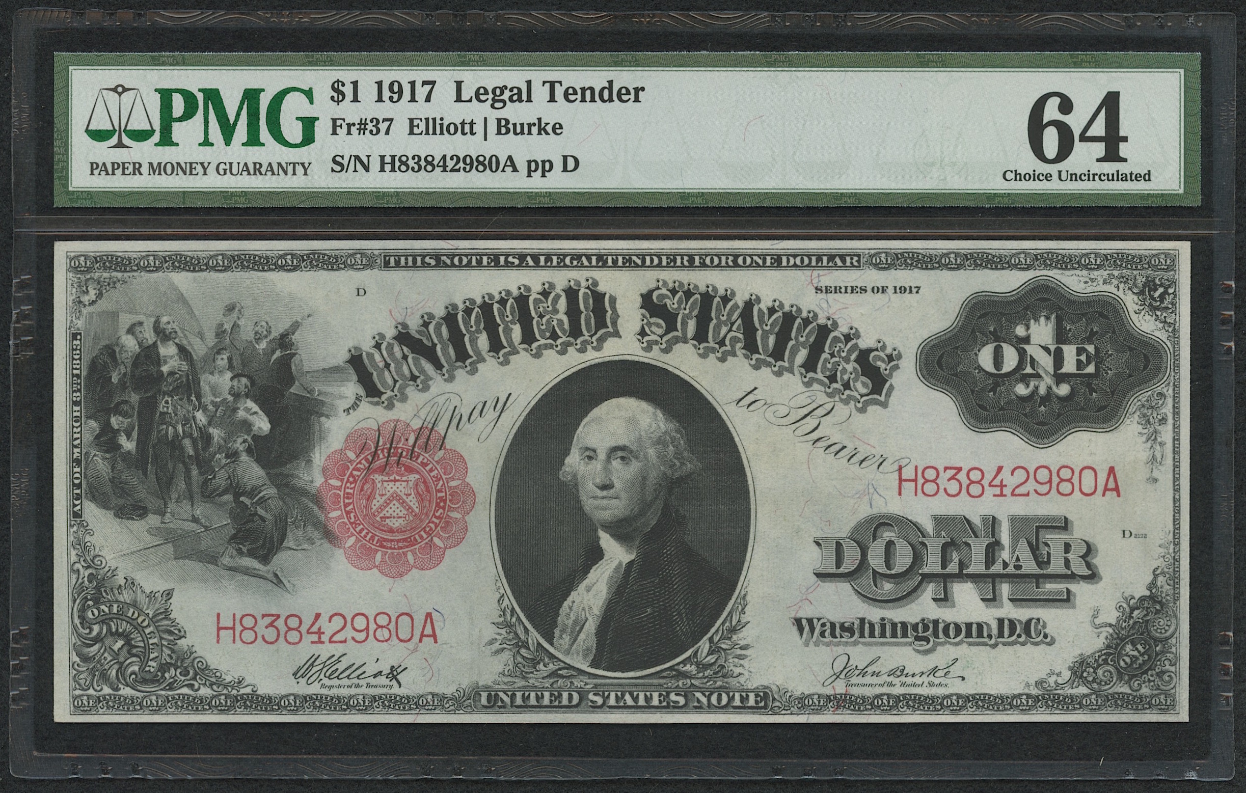 1917 $1 One Dollar Legal Tender Large Bank Note (PMG 64)
