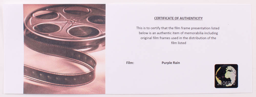 "Purple Rain" Limited Edition Original Film / Movie Cell Display