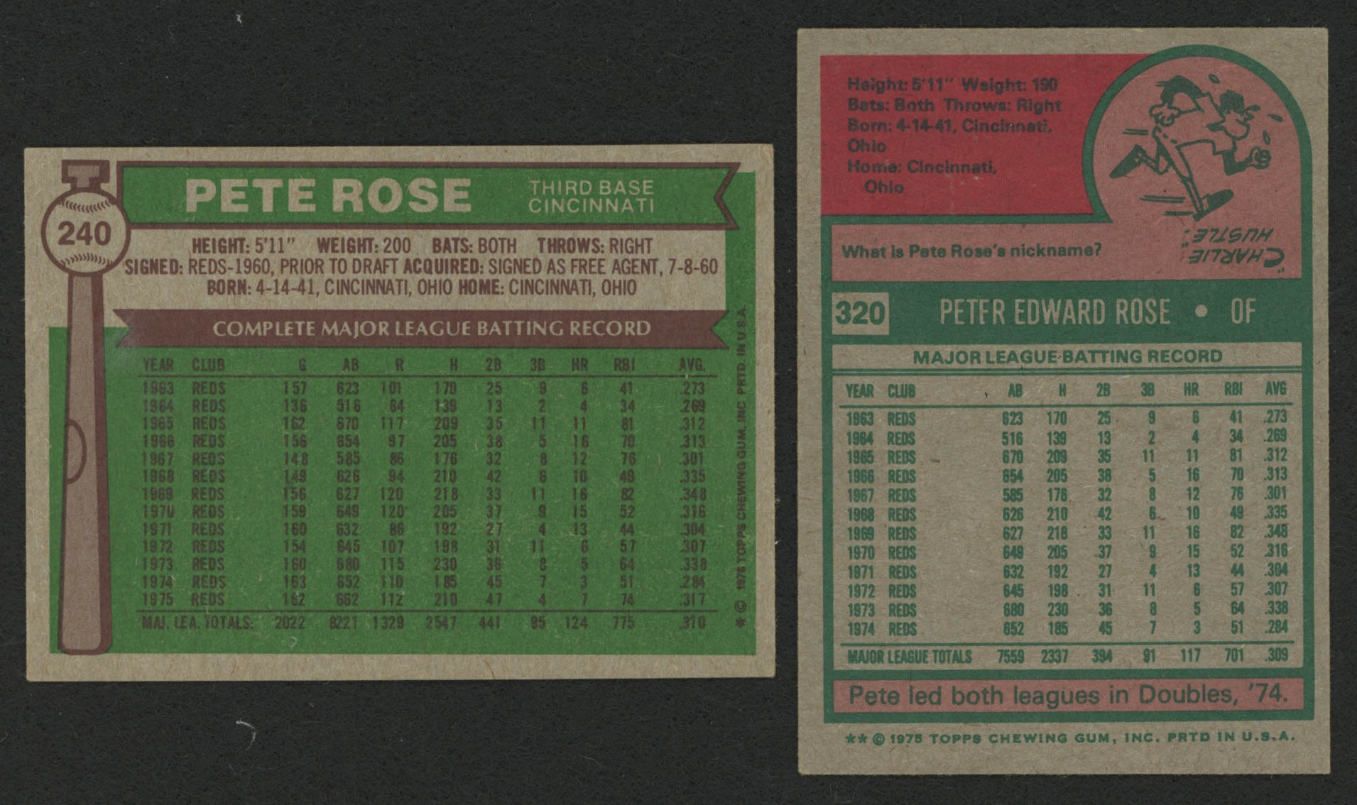 Lot of (2) Pete Rose Baseball Cards with 1976 Topps #240 & 1975 Topps #320