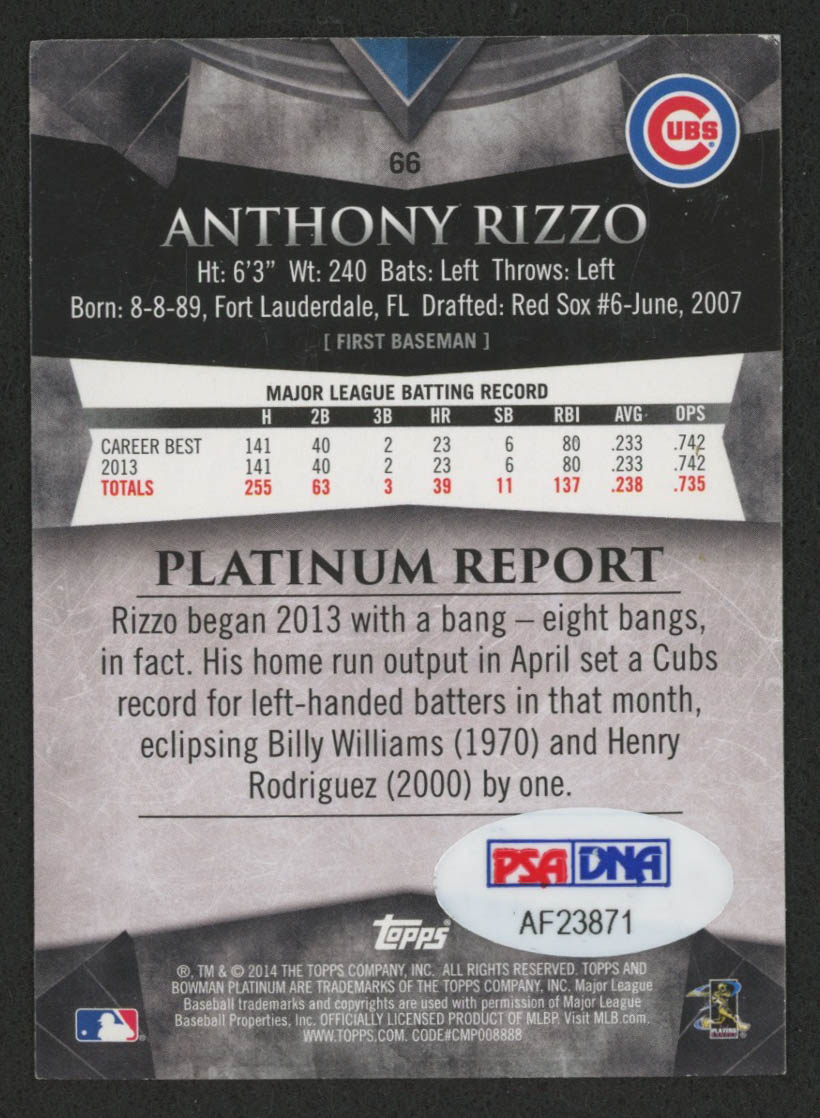 Anthony Rizzo Signed 2014 Bowman Platinum #66 (PSA Hologram)