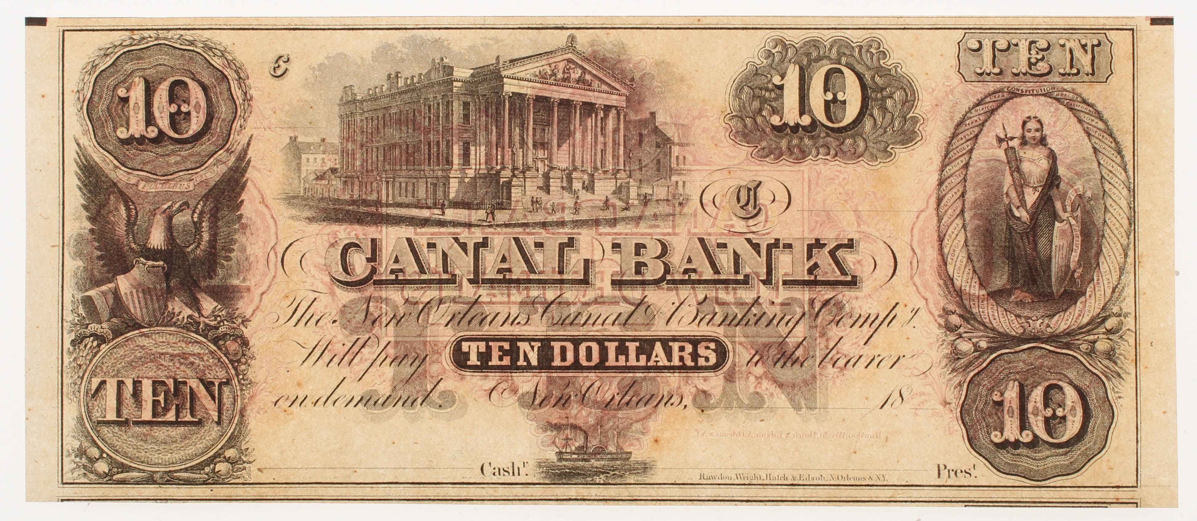 1800s $10 Ten Dollars - Canal & Banking Co. - New Orleans, LA Bank Note Bill (Crisp, Uncirculated)
