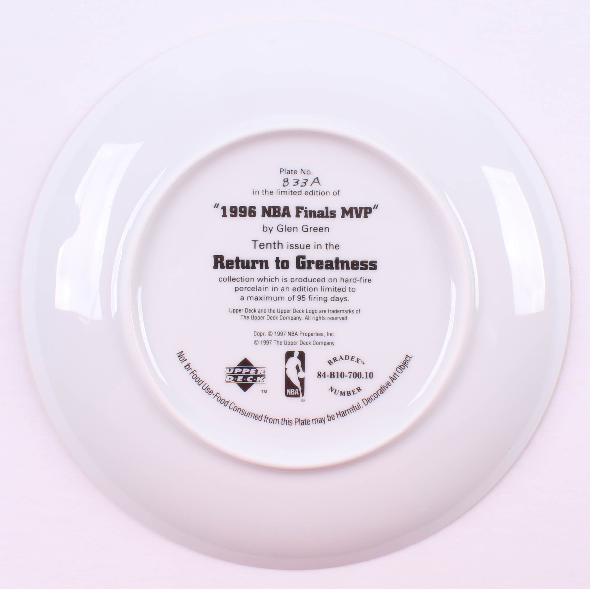 Michael Jordan LE "1996 NBA Finals MVP" Upper Deck Porcelain Plate