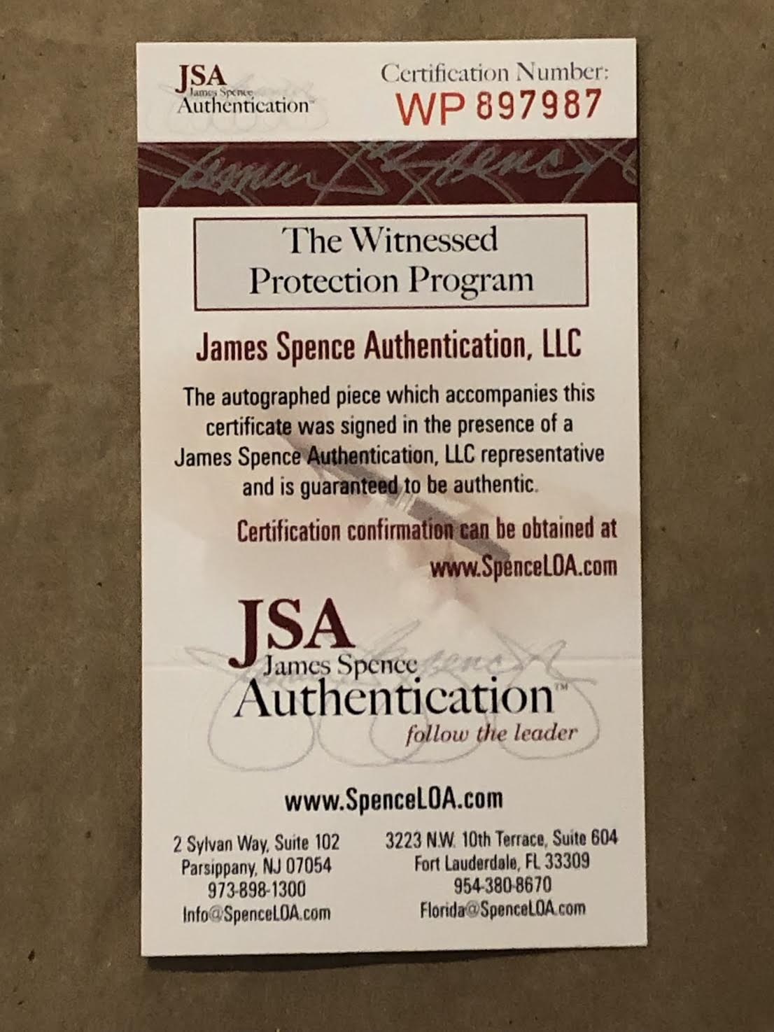 The lot / autograph(s) includes an official James Spence Authentication (JSA) hologram and matching COA for authenticity purposes. The signing of this item was witnessed by JSA.