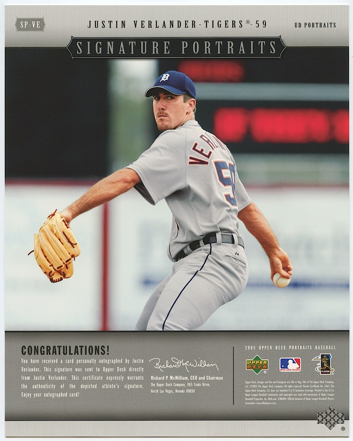 2005 UD Portraits Signature Portraits Autograph 8x10 #VE Justin Verlander