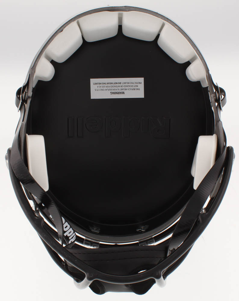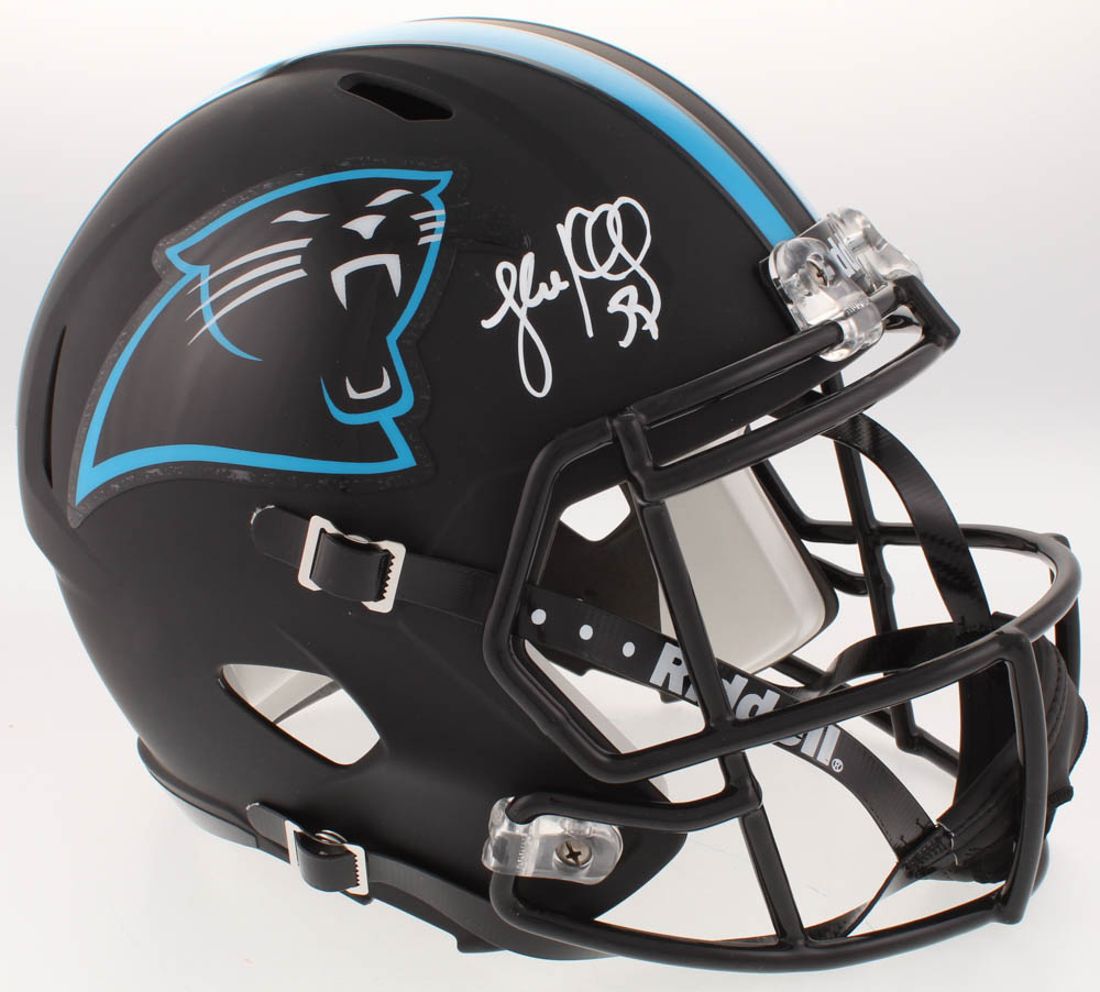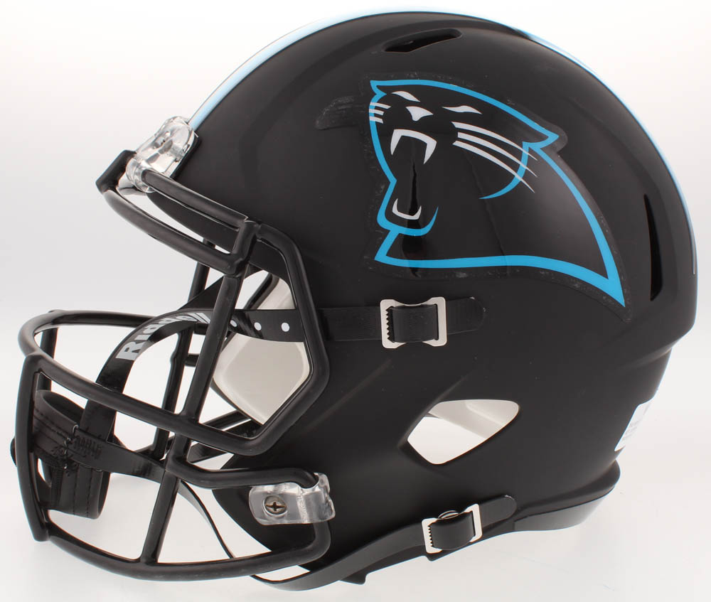 Riddell Carolina Panthers full-size custom matte black replica speed helmet. Hand-signed in white paint pen by Luke Kuechly.