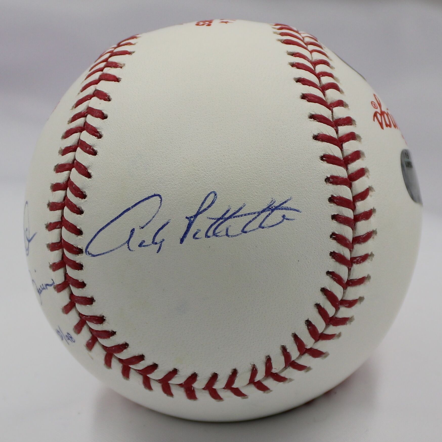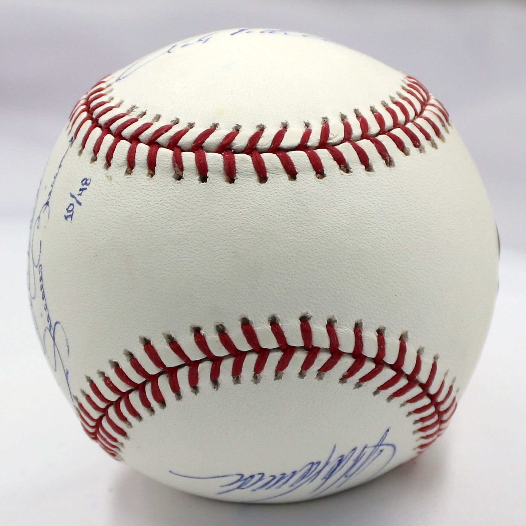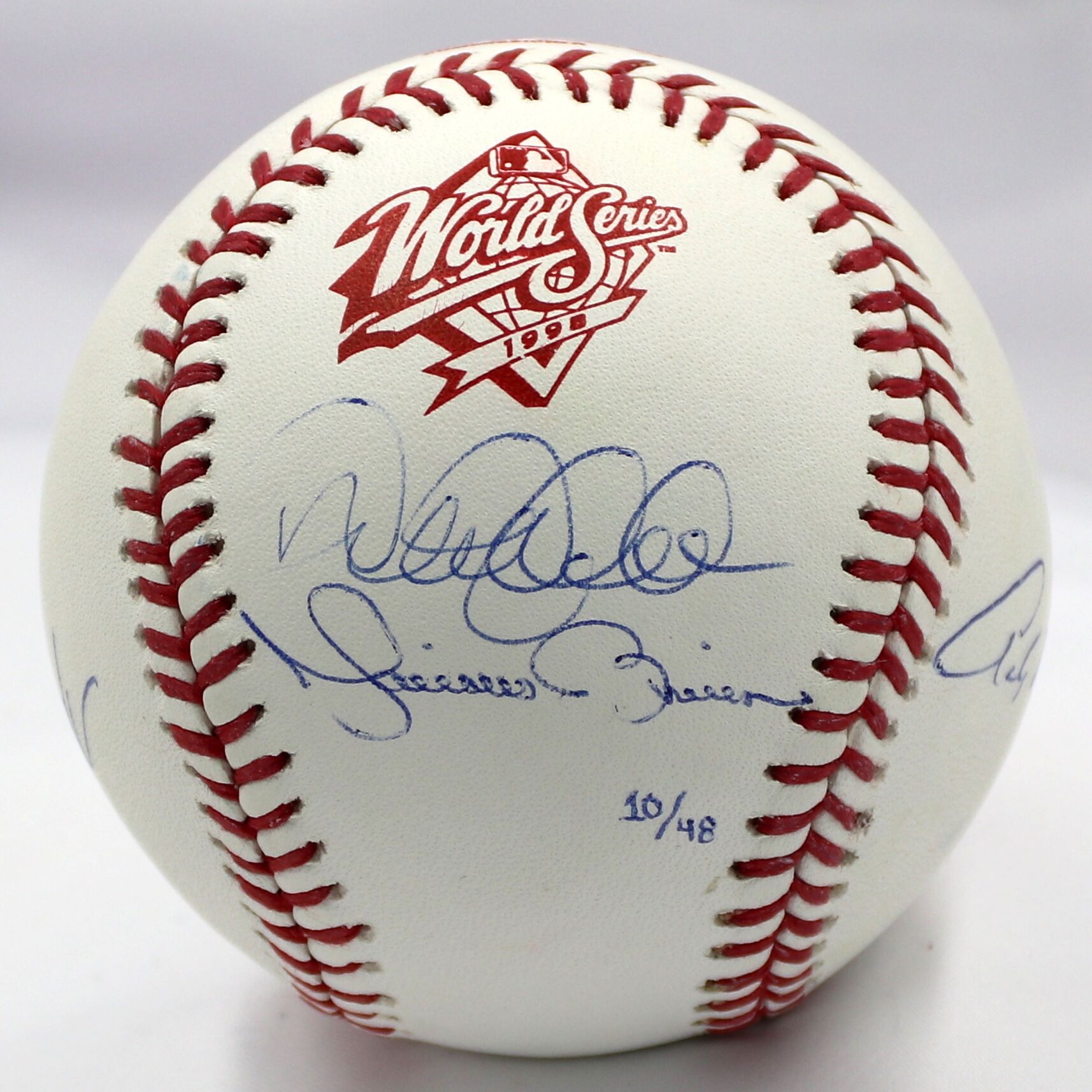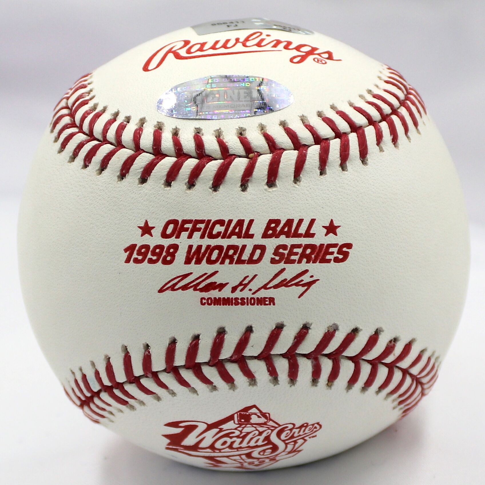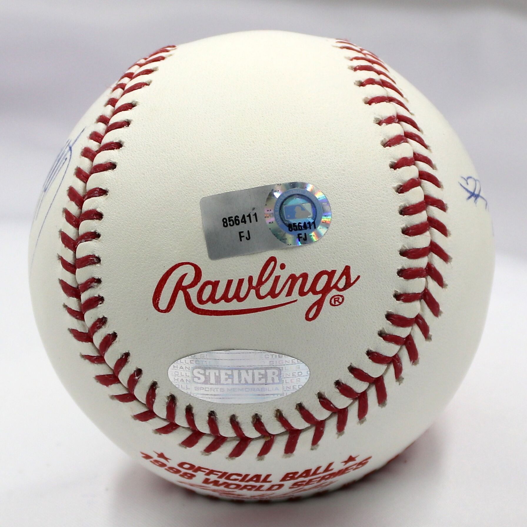Rawlings Official 1998 World Series baseball. Hand-signed in blue ink pen by Derek Jeter, Mariano Rivera (HOF), Andy Pettitte and Jorge Posada. Baseball has been hand-numbered limited edition #10/48.
