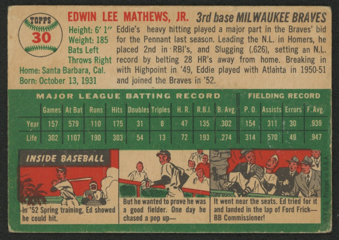 1954 Topps #30 Eddie Mathews