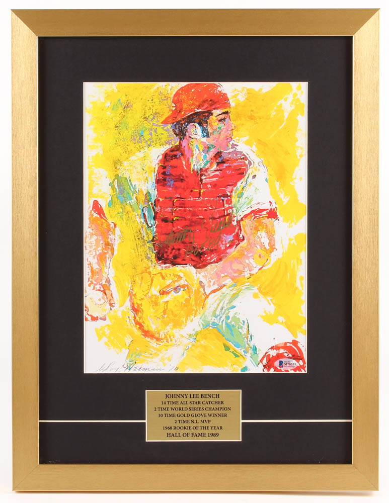 Johnny Bench Signed "LeRoy Neiman" 16x21 Custom Framed Print Display Inscribed "HOF 89" (Beckett COA)
