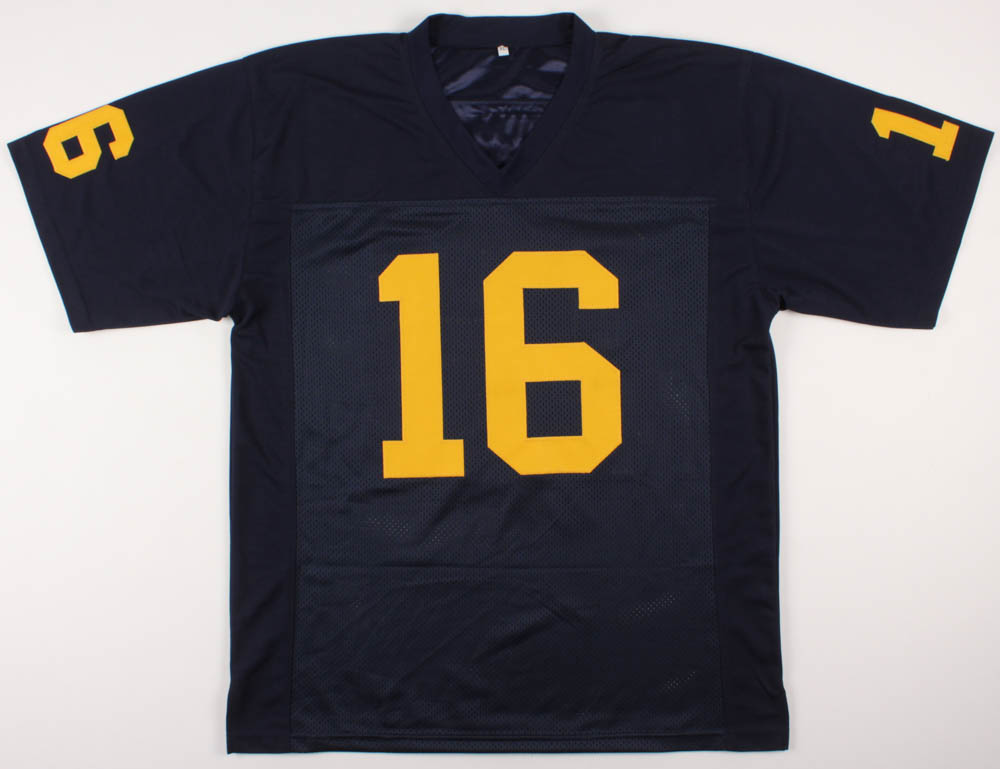 Custom on-field style jersey. Everything is sewn on, size XL. Hand-signed in black felt-tip pen by Denard Robinson.