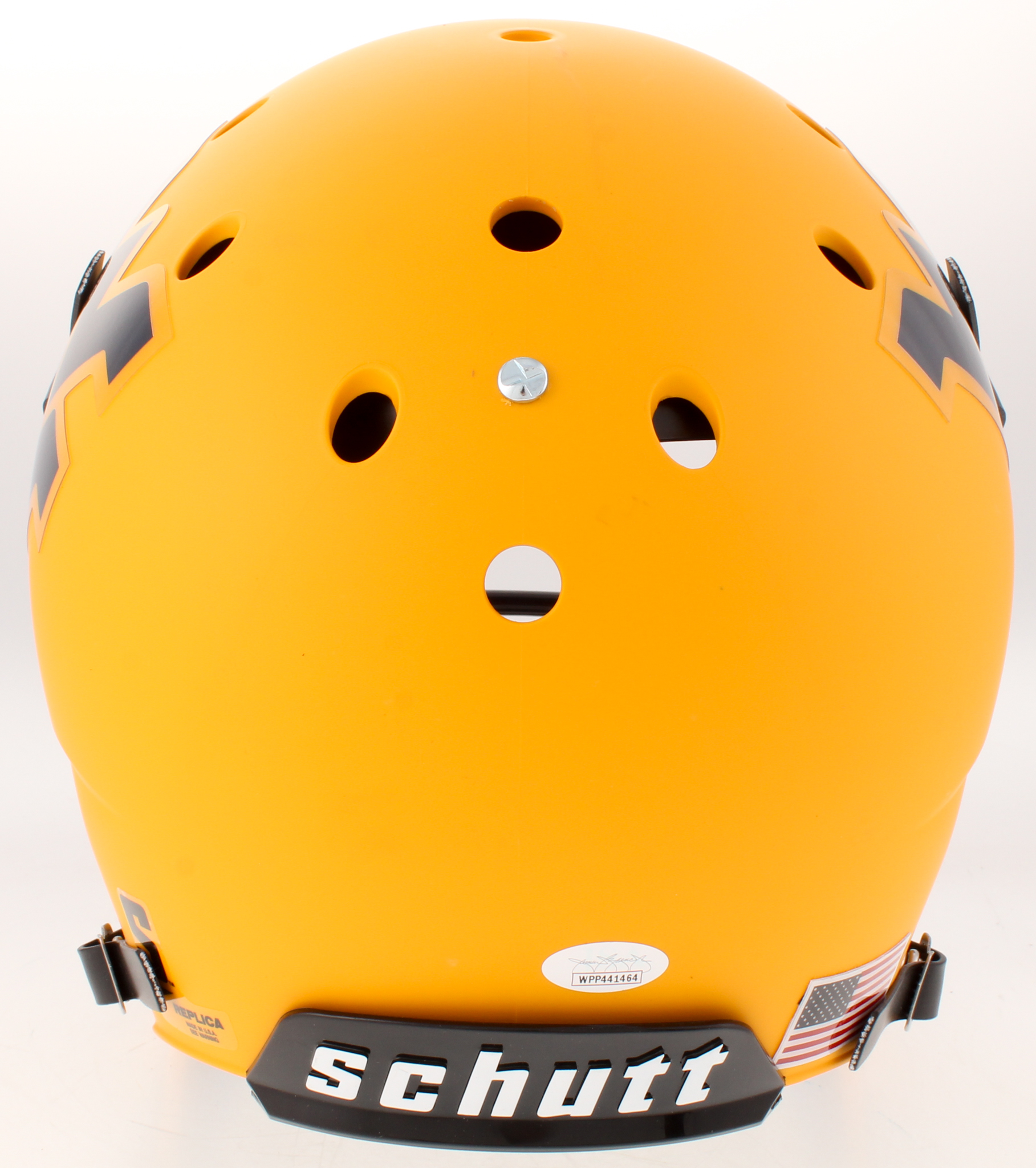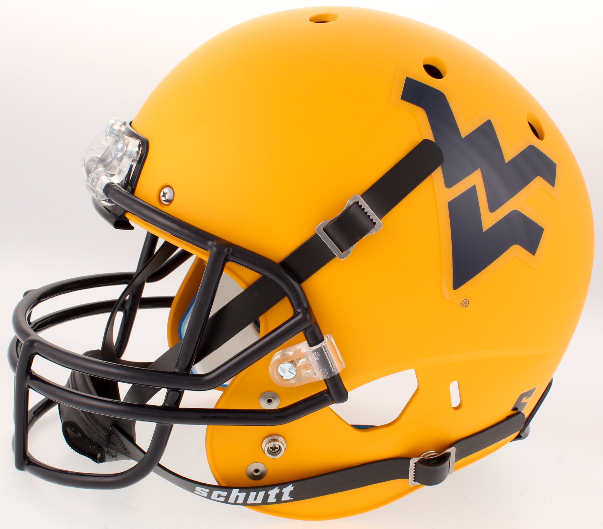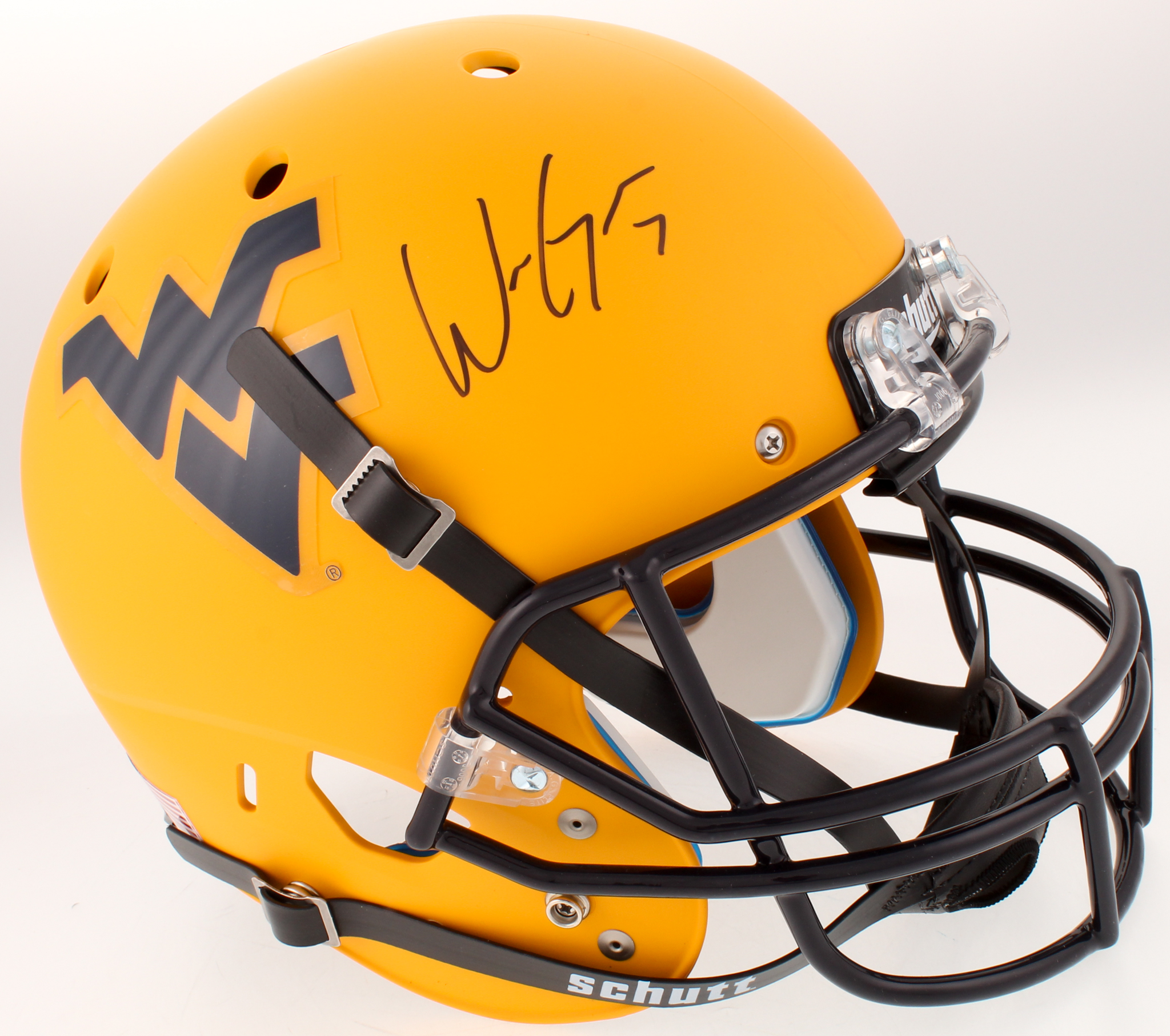 Schutt West Virginia Mountaineers full-size replica helmet. Hand-signed by Will Grier.