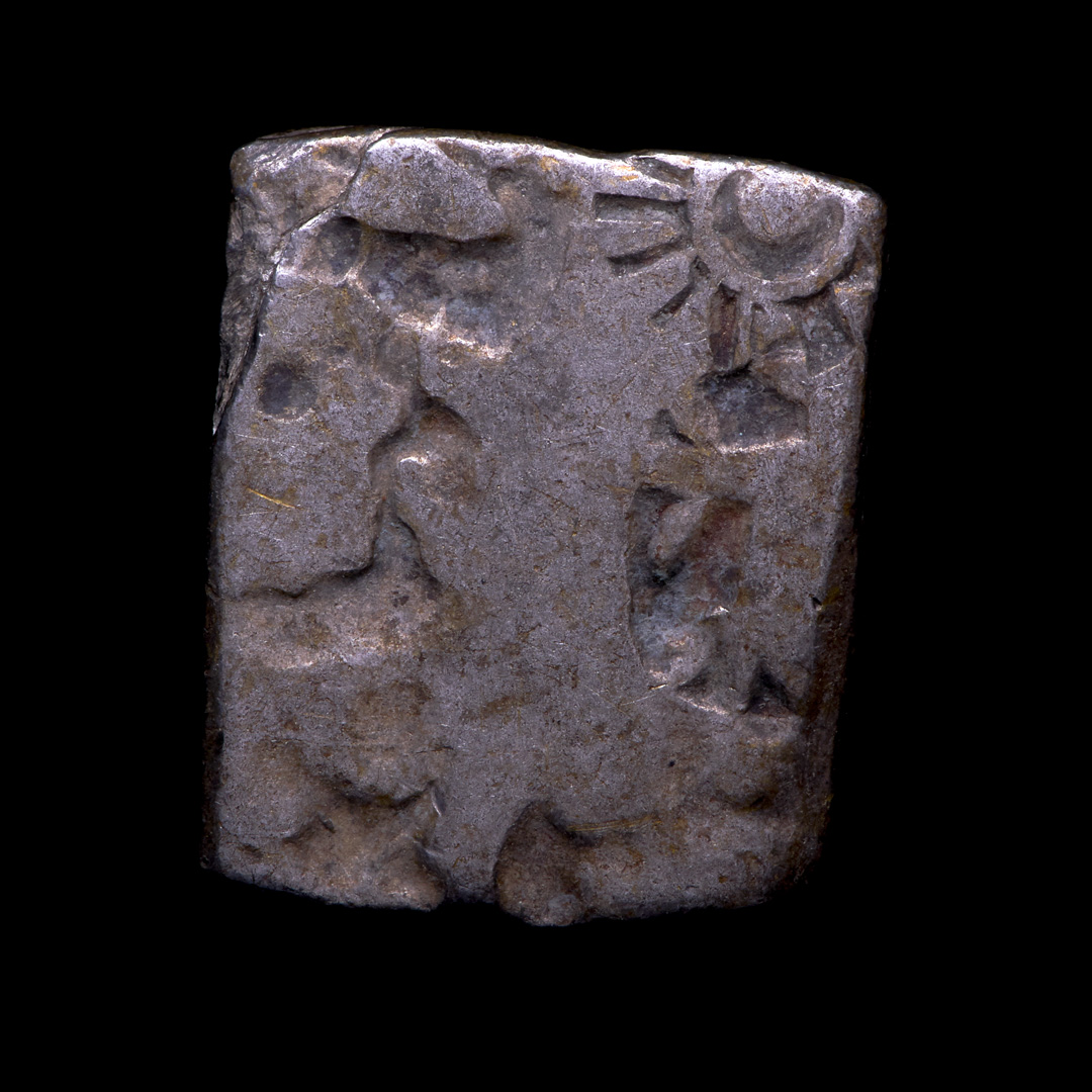 Ancient Indian coinage from the Mauryan Empire founded after the death of Alexander the Great. The empire stretched from Iran to Afghanistan at its peak power.