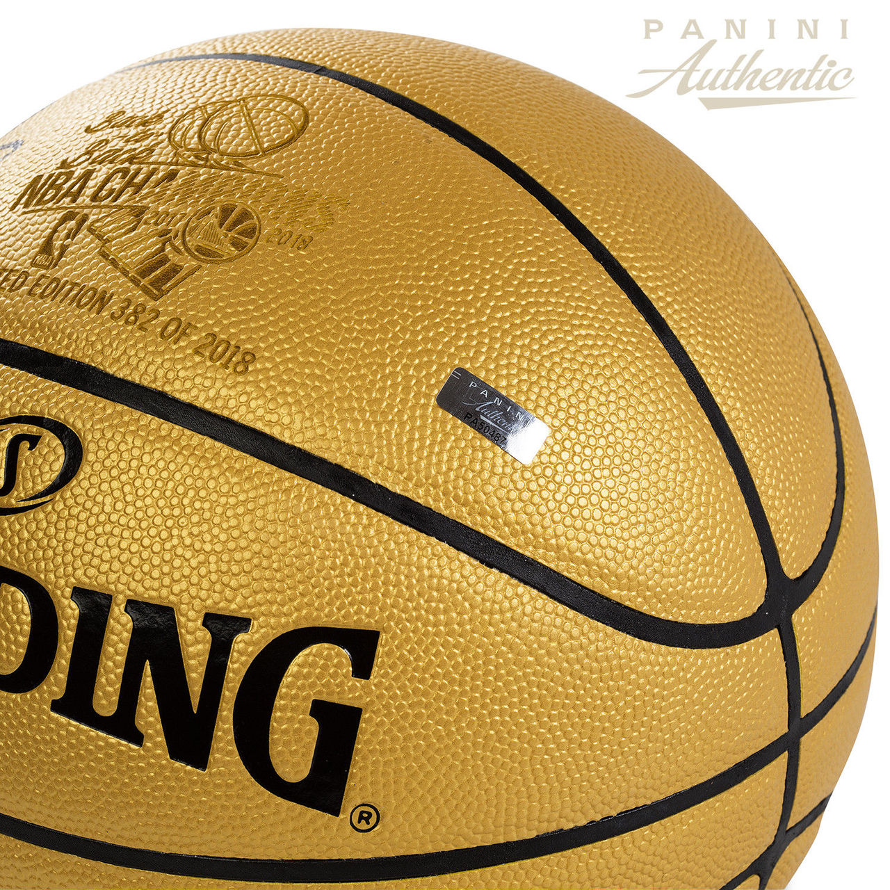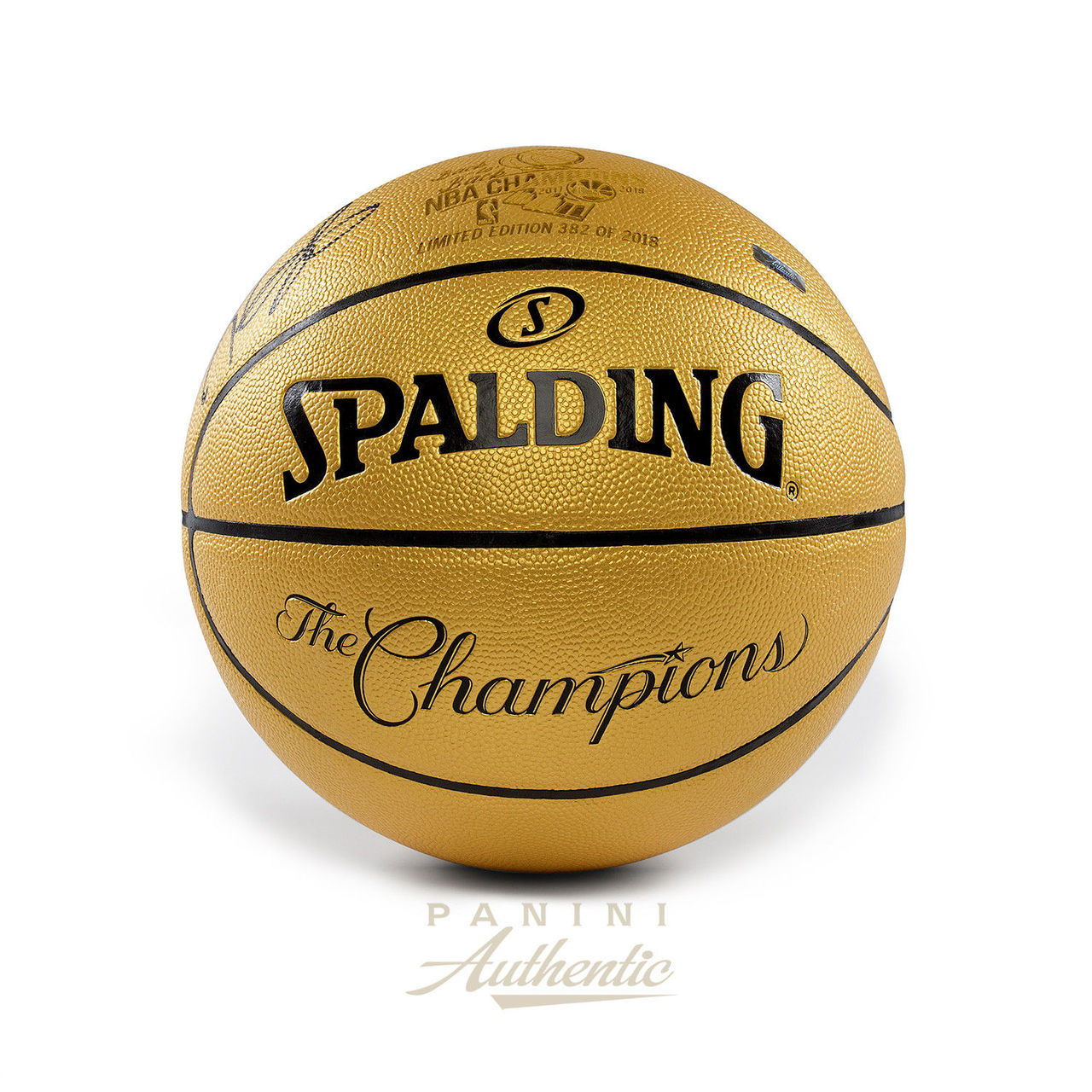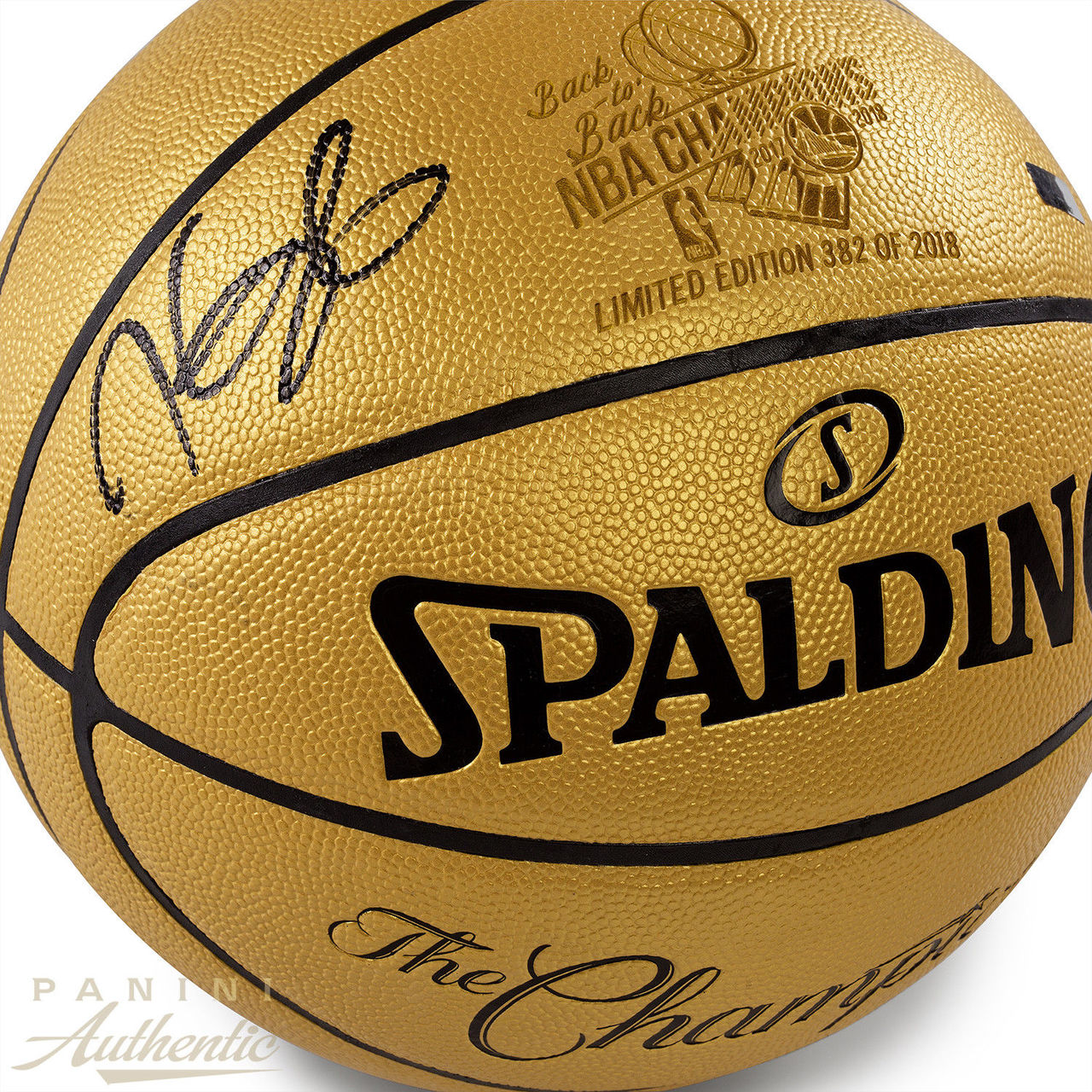 Spalding Warriors 2018 NBA "Back to Back" Finals Champions logo gold basketball. Hand-signed in black felt-tip pen by Kevin Durant (Thunder). Basketball is limited edition and has been serially-numbered #/2018. Winning bidder will receive a random number from this same edition,