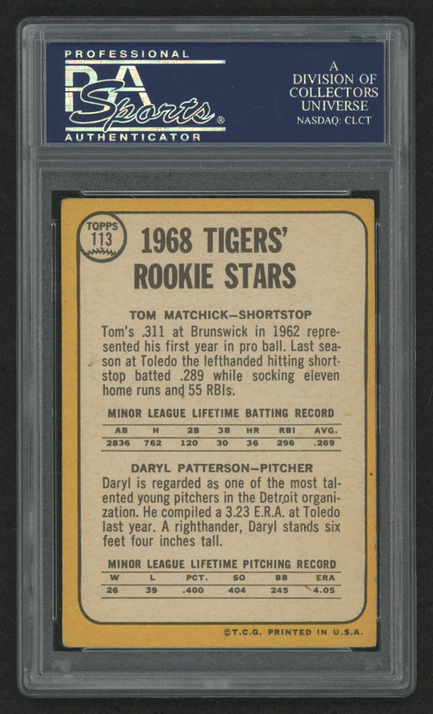 Tom Matchick & Daryl Patterson Signed 1968 Topps #113 Rookie Stars / Tom Matchick / Daryl Patterson RC (PSA Encapsulated)
