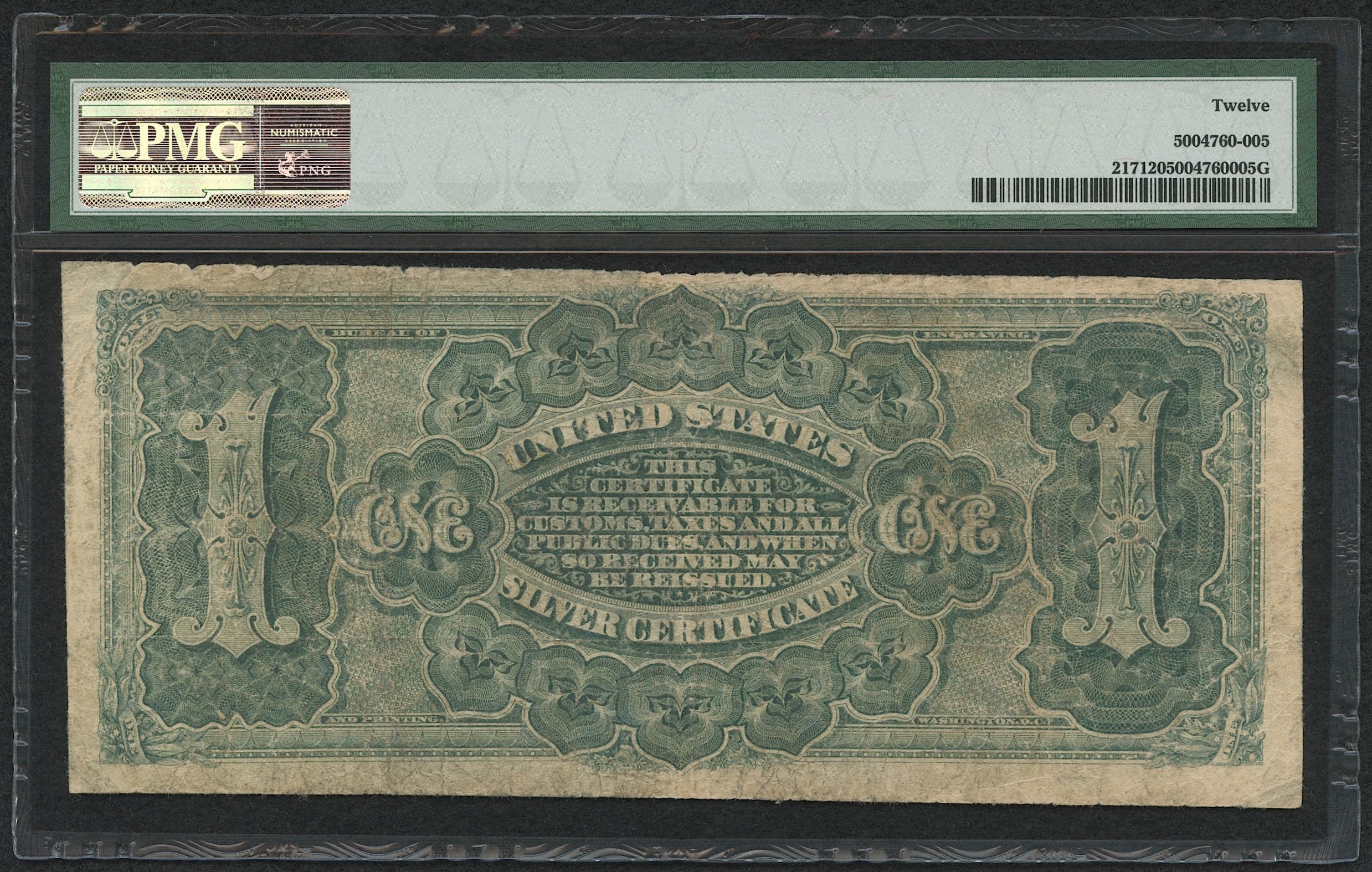 1886 $1 One Dollar Silver Certificate Large Size Bank Note (PMG 12)