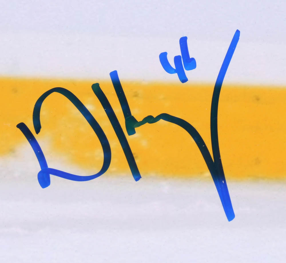 Custom framed photo display measures 20" x 25" in size and has been hand-signed in blue felt-tip pen by David Krejci.