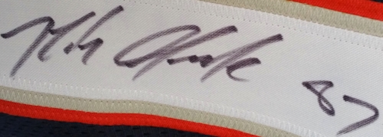 Custom on-field style jersey. Everything is sewn on, size XL. Hand-signed in black felt-tip pen by Rob Gronkowski.
