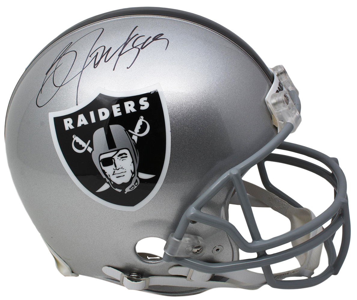 Riddell Oakland Raiders full-size authentic on-field helmet. Hand-signed by Bo Jackson.
