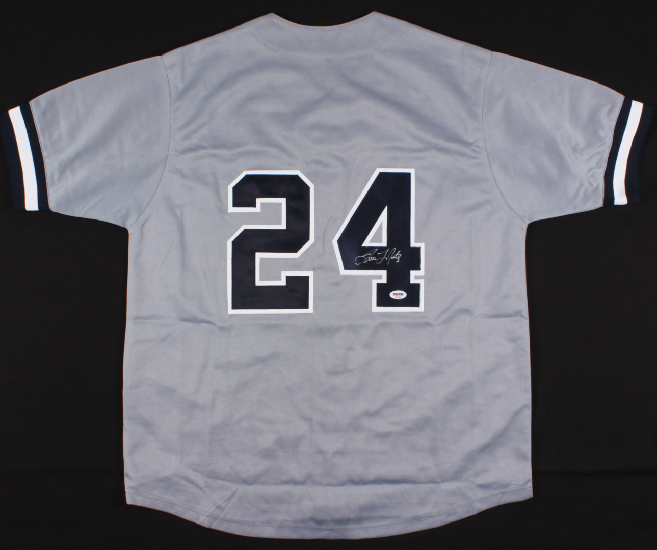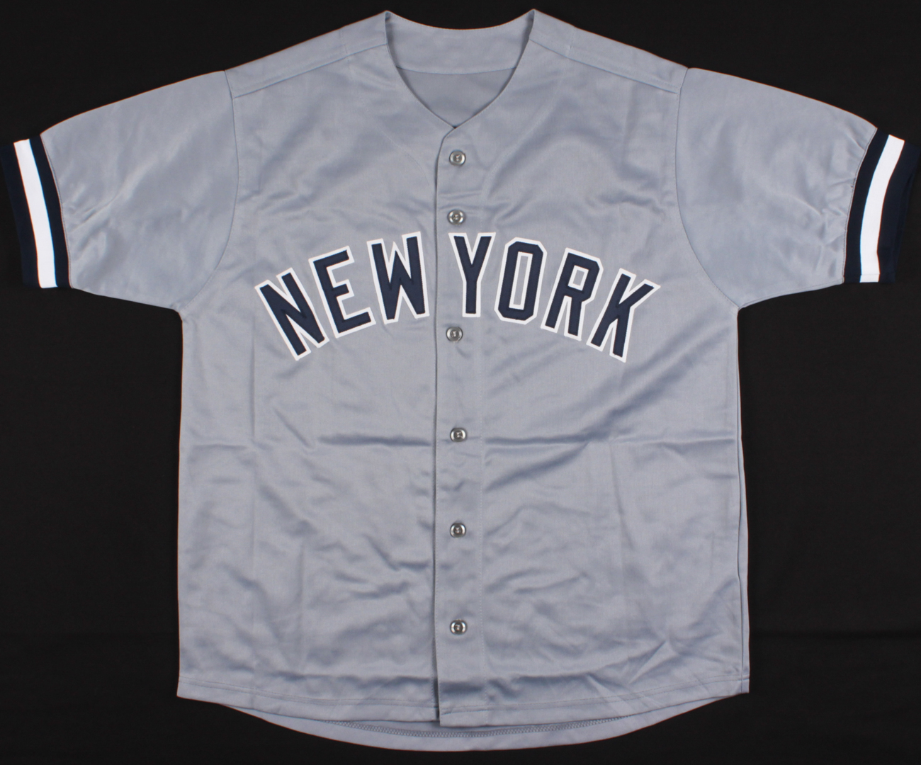 Custom on-field style jersey. Everything is sewn on, size XL. Hand-signed in silver paint pen by Tino Martinez.