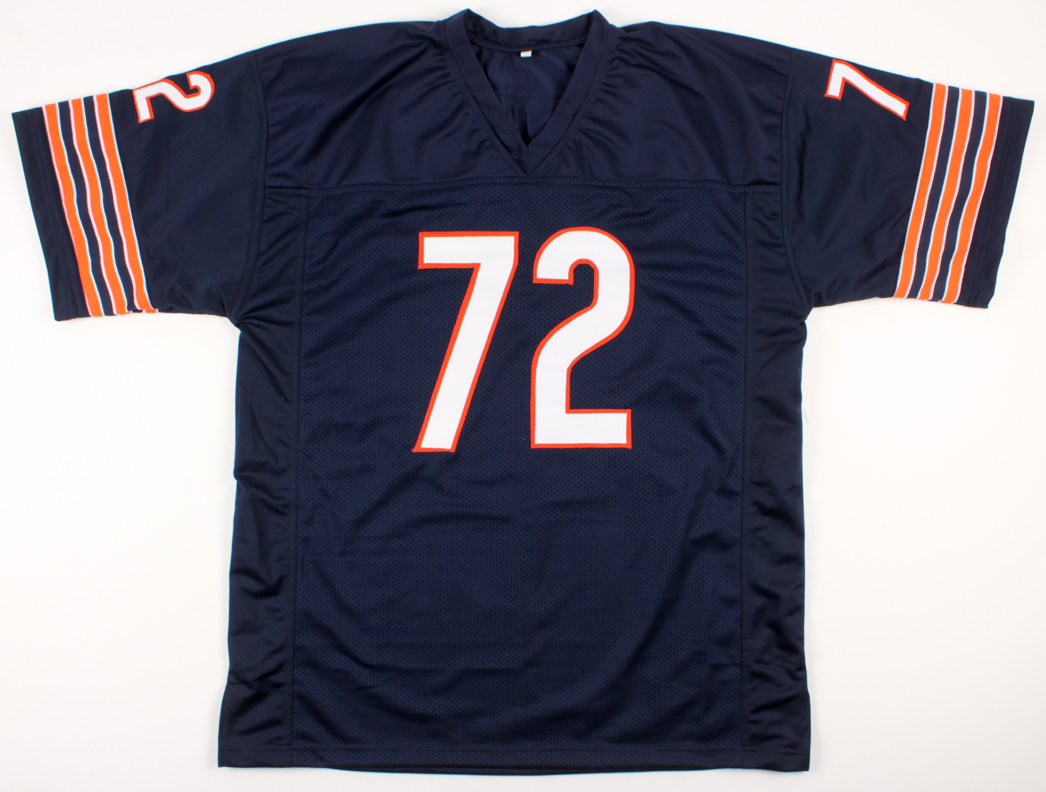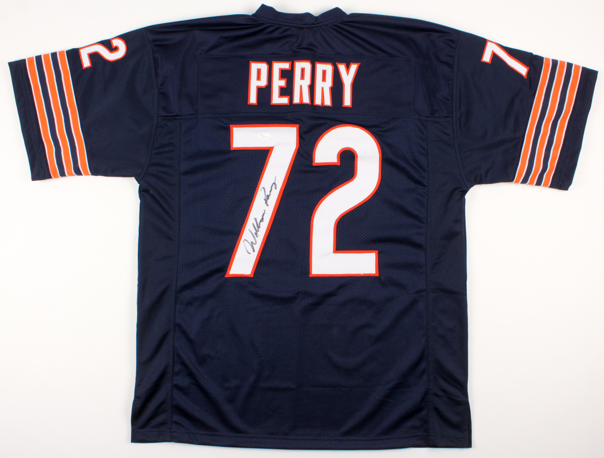 Custom on-field style jersey. Everything is sewn on, size XL. Hand-signed in black felt-tip pen by William Perry.