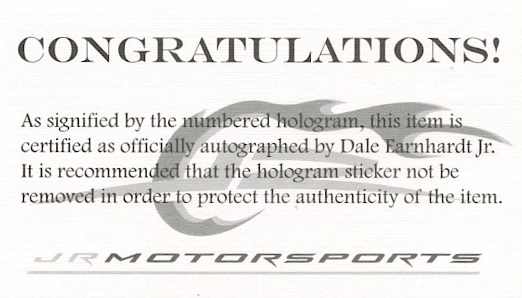 Authentication: Dale Jr. COA & Pristine Authentic COA