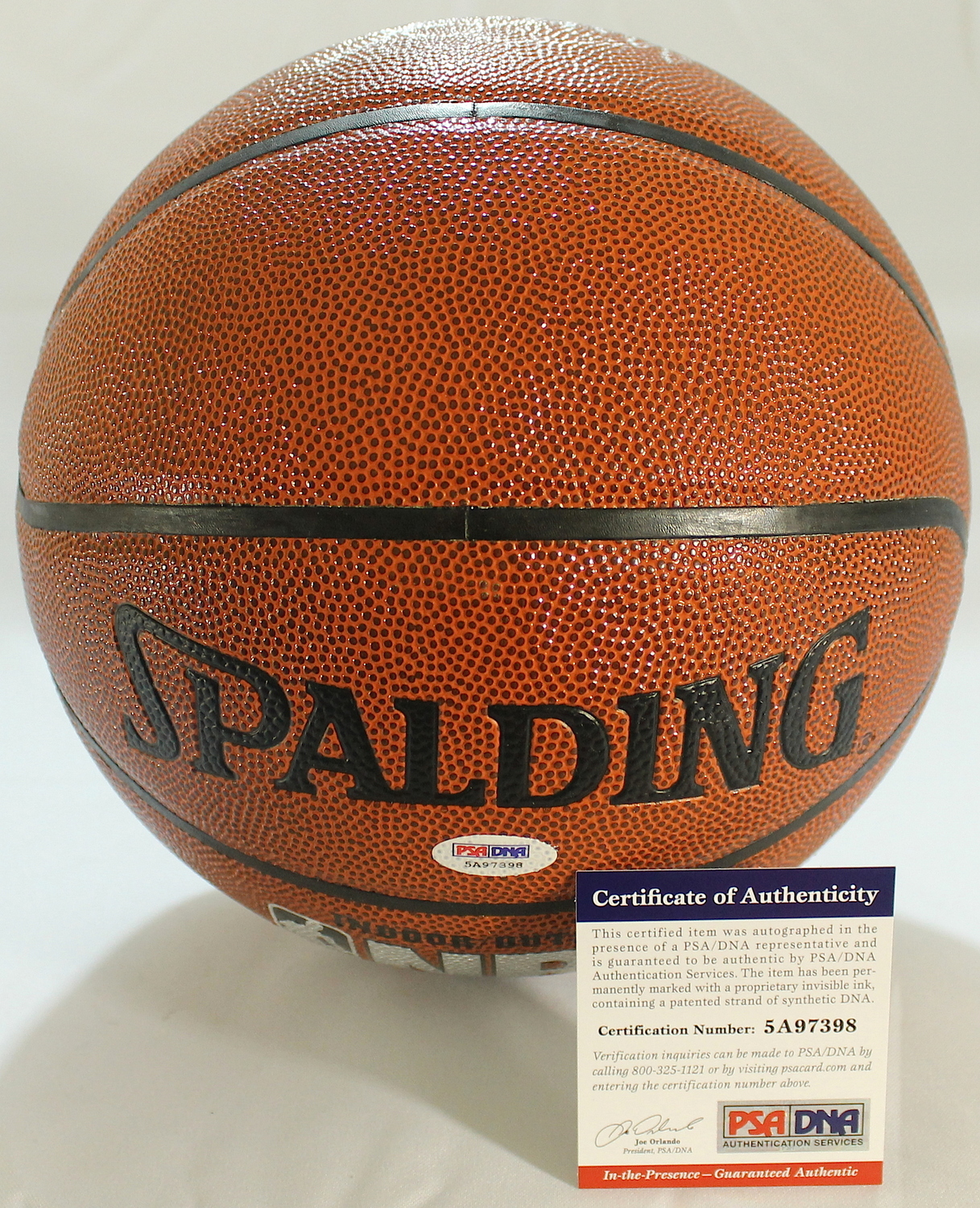 Spalding indoor/outdoor Basketball. Hand-signed in silver paint pen by Magic Johnson (Lakers HOF). The autograph includes an official PSA/DNA hologram and matching COA for authenticity purposes. The signing of this item was witnessed by PSA.