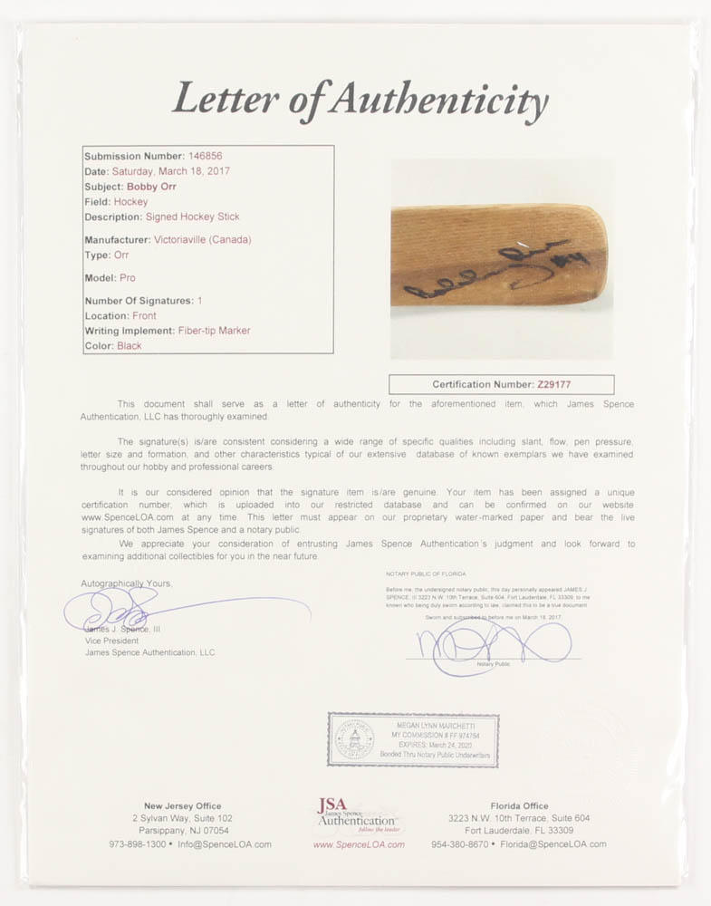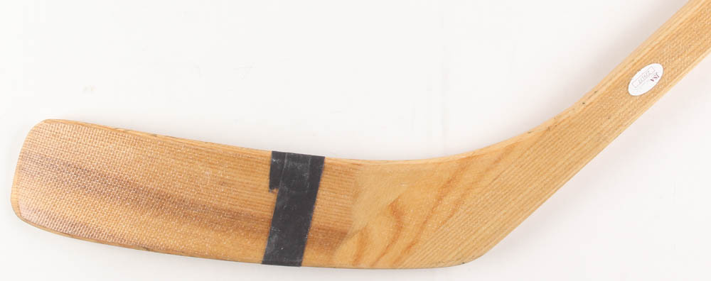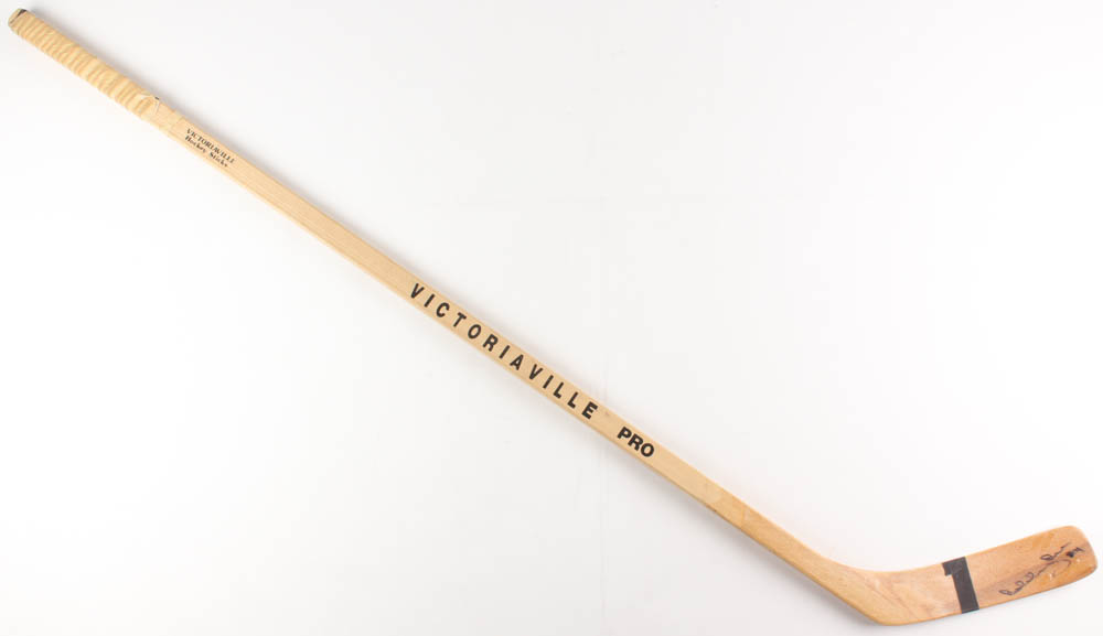 The stick is manufactured by Victoriaville - replicating the exact material, curve and lettering used by Bobby Orr.