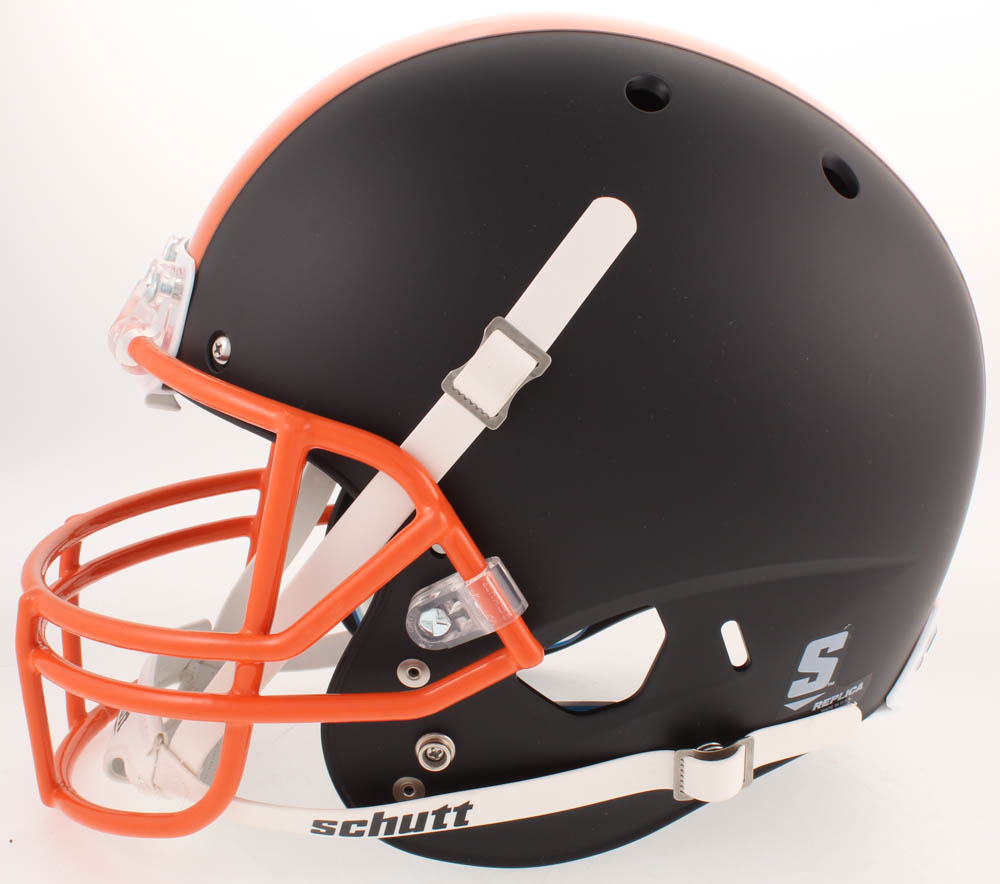 Schutt Cleveland Browns full-size replica helmet has been hand-signed in silver paint pen by Baker Mayfield.