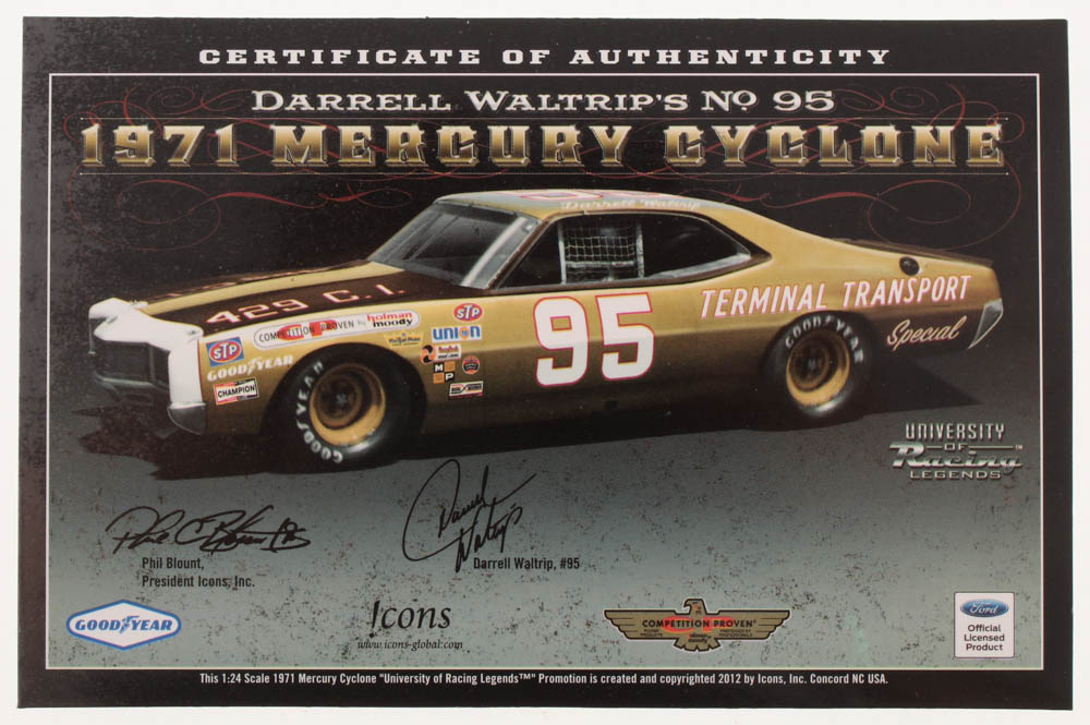 Darrell Waltrip Signed NASCAR #95 1971 Mercury Cyclone 1:24 - Scale Die-Cast Stock Car (JSA COA)