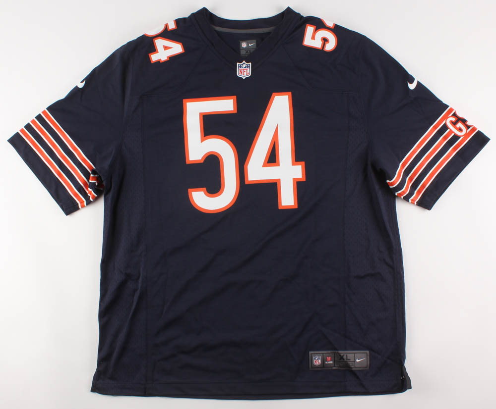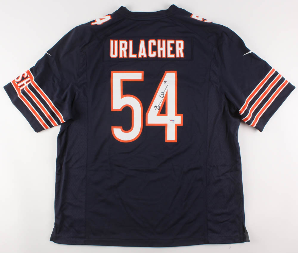 Nike on-field style jersey. Everything is printed on, size XL. Hand-signed in black felt-tip pen by Brian Urlacher (HOF).