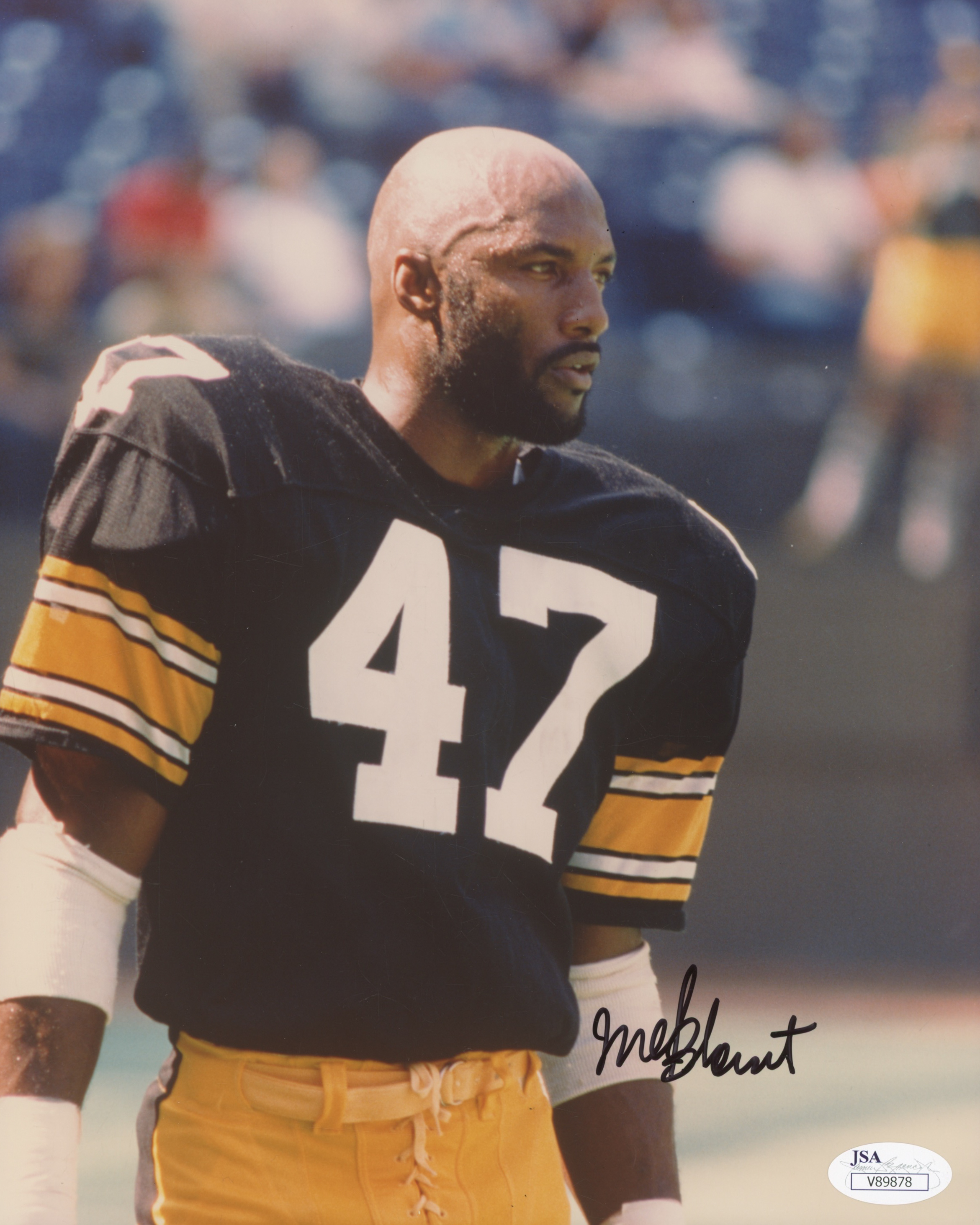 Photo measures 8" x 10" in size and has been hand-signed in black felt-tip pen by Mel Blount (HOF).