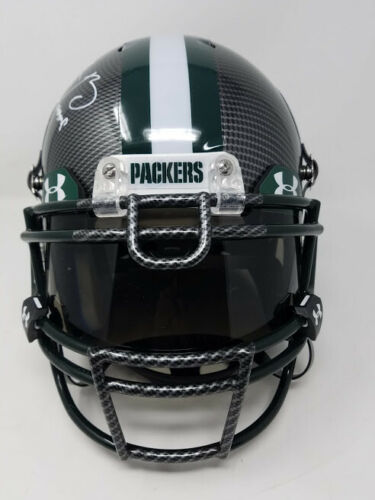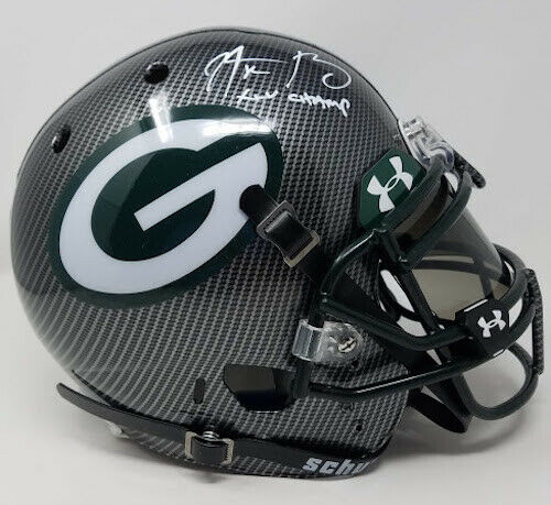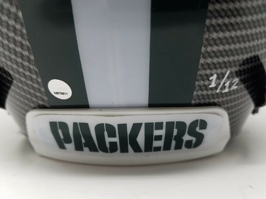 Aaron Rodgers was a first-round draft pick of the Green Bay Packers in the 2005 NFL Draft. Rodgers finally got the starting nod prior to the 2008 season and hasn't looked back since. Rodgers has led the Packers to the playoffs for two straight seasons 2009: 4.434 yards 30 TD a 7 INT 11-5 record and arguably did his best work in 2010 putting the Packers on his shoulders and leading them into the SB. On February 6th, 2011 Rodgers returned the Packers to glory leading them past the Pittsburgh Steelers in SB XLV. Aaron Rodgers is one of the best QB in the NFL today and should have the Pack competing for more SB titles for years to come. The signature on this item has been authenticated by Steiner Sports and features a uniquely numbered tamper-proof hologram which can be verified in our online database. This process ensures your item is authentic and prevents duplication and fraud. This helmet is limited to just 12 and you will receive number "1" from the edition. These are in stock and ready to ship.