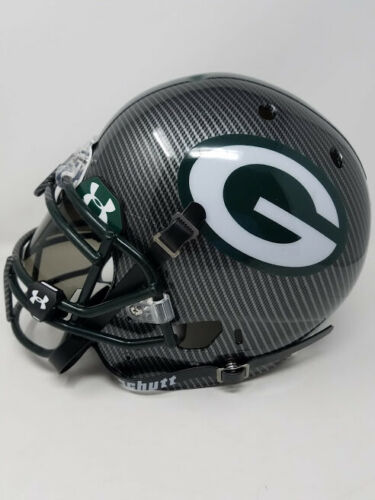 Green Bay Packers custom hydro dipped full-size authentic on-field helmet. Hand-signed and inscribed in white paint pen by Aaron Rodgers. The helmet is a limited edition and has been hand-numbered #1/12.