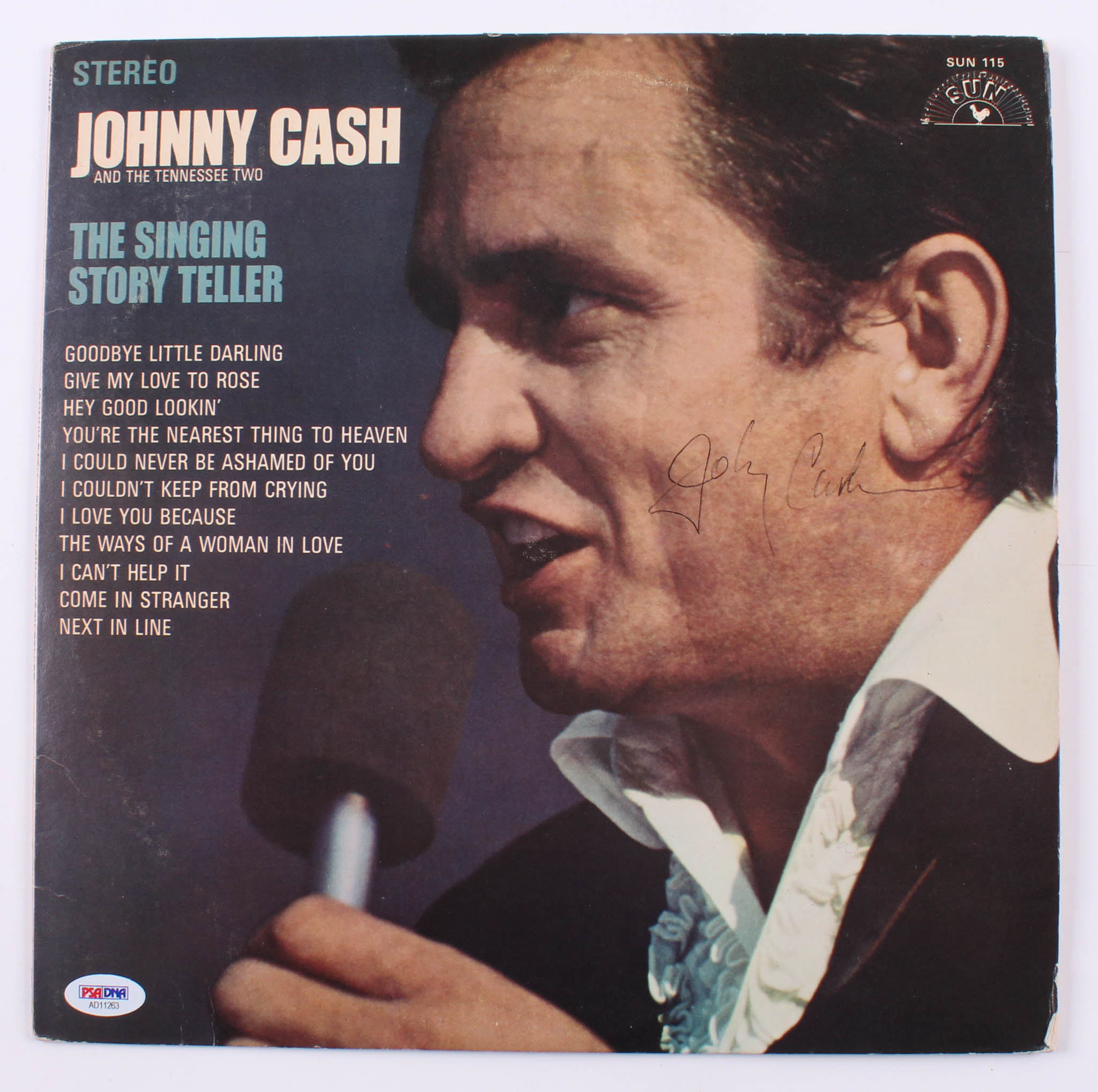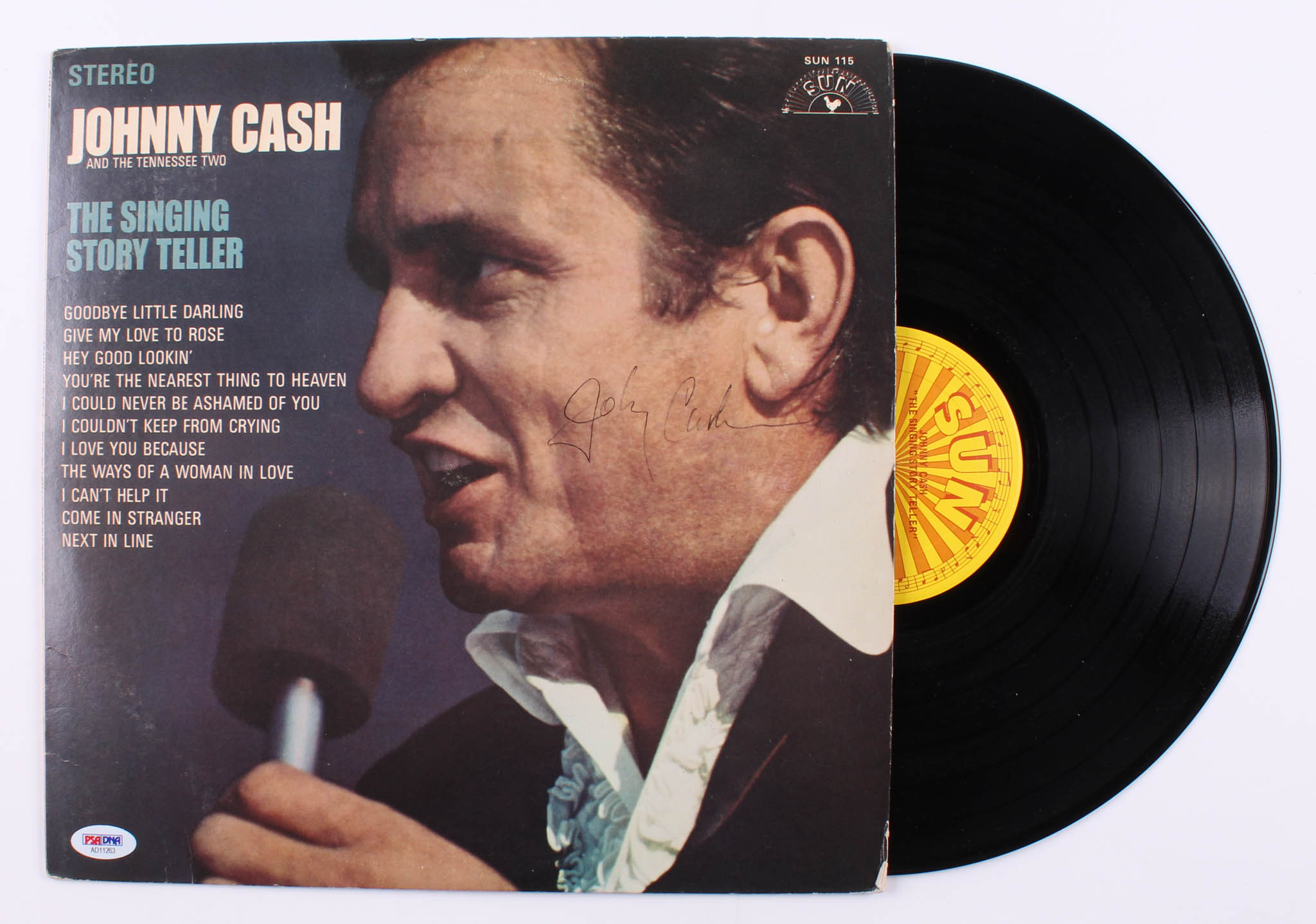 Johnny Cash Signed "The Singing Story Teller" Vinyl Record Album Cover (PSA COA)
