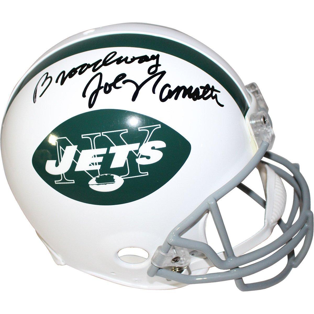 New York Jets full-size authentic proline throwback helmet has been hand-signed in black felt-tip pen by Joe Namath (HOF).