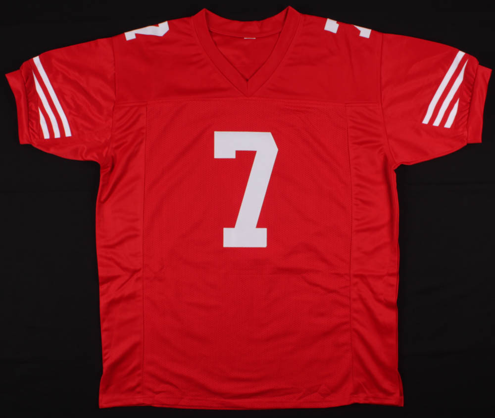 Custom on-field style jersey. Everything is sewn on, size XL. Hand-signed in black felt-tip by Colin Kaepernick.
