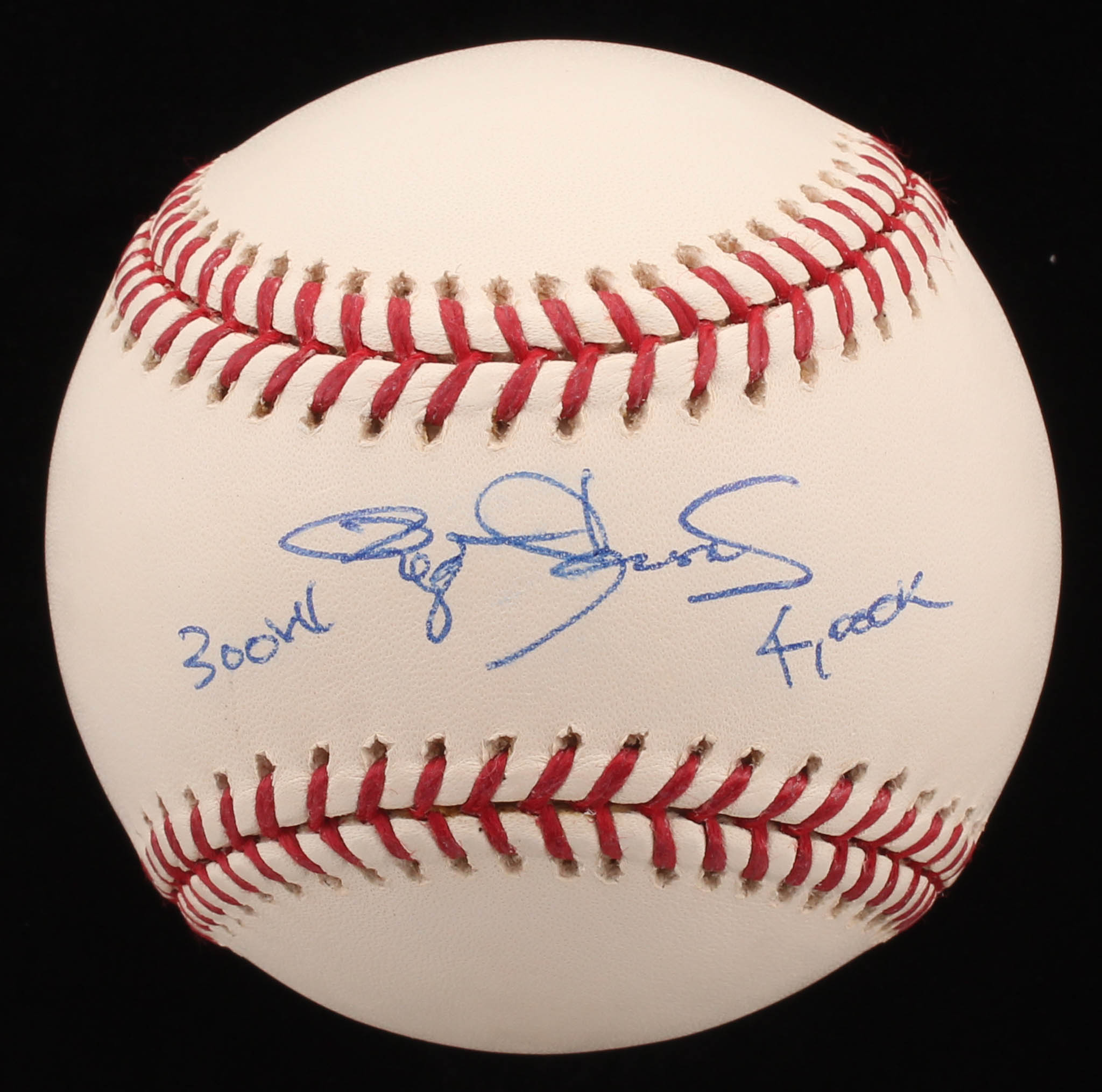 Roger Clemens Signed OML Baseball Inscribed "300 W" & "4,000 K" (Steiner COA)