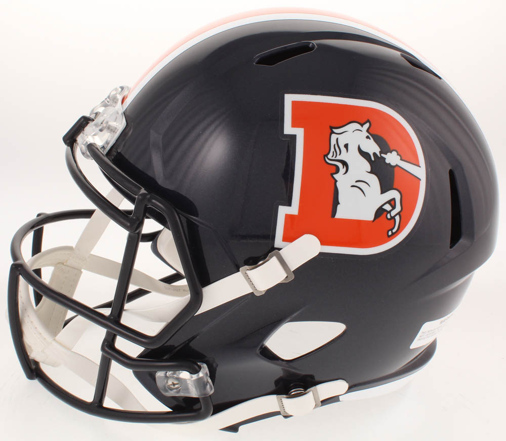 Riddell Denver Broncos full-size replica speed helmet. Hand-signed in white paint pen by Peyton Manning.