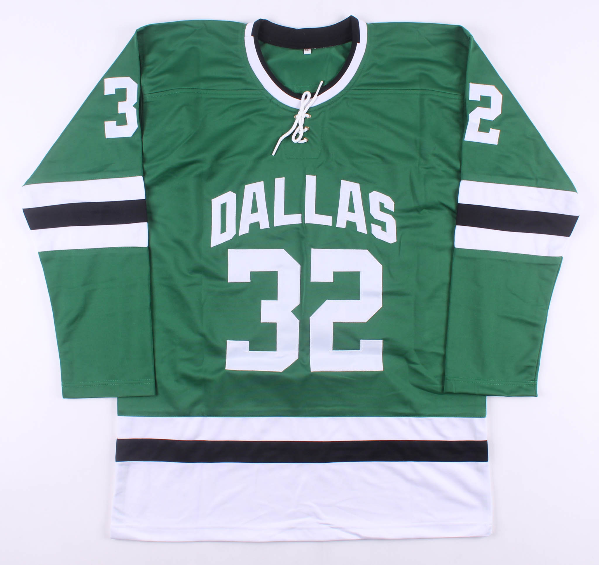 Custom on-ice style jersey. Everything is sewn on, size XL. Hand-signed in black felt-tip pen by Kari Lehtonen.