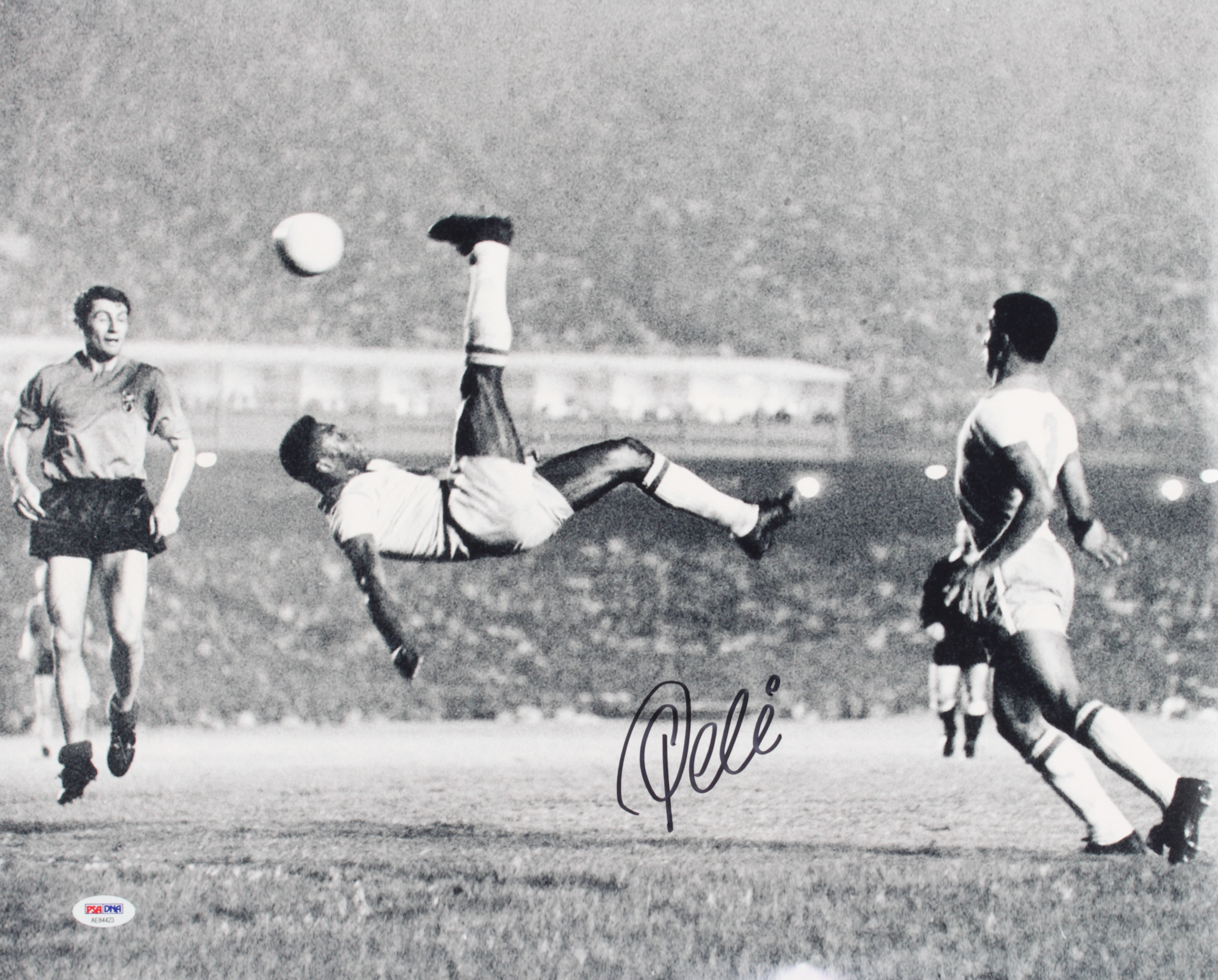 Photo measures 16" x 20" in size and has been hand-signed by Pele (HOF).