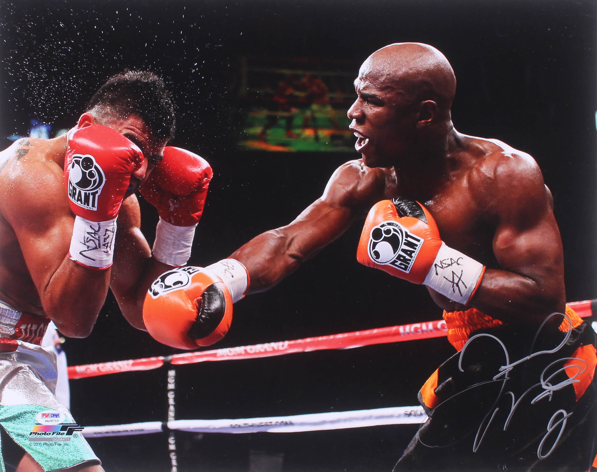 Photo measures 16" x 20" in size and is hand-signed by Floyd Mayweather Jr (HOF).