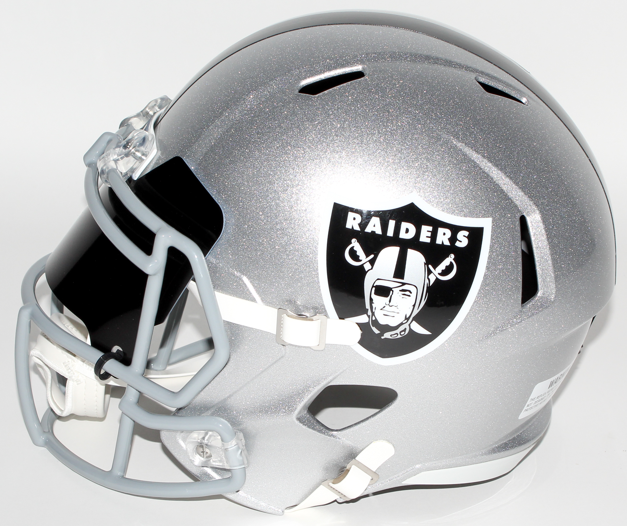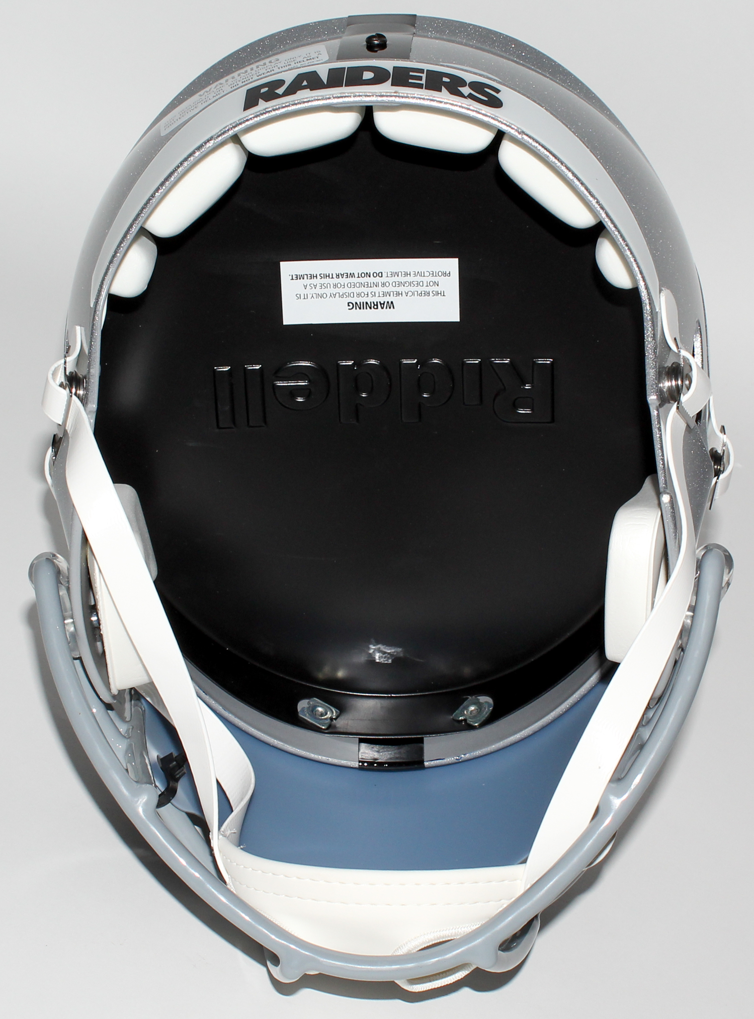 Riddell Los Angeles Raiders full-size speed replica helmet hand-signed in black felt-tip pen by Bo Jackson. Please see photos for details regarding the condition of the helmet.