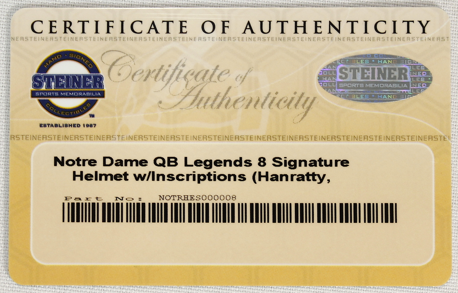 Multi-Signed Notre Dame QB Legends Full-Size Helmet Signed by (8) With Joe Montana, Paul Hornung, Joe Theismann, Daryle Lamonica (Steiner COA)