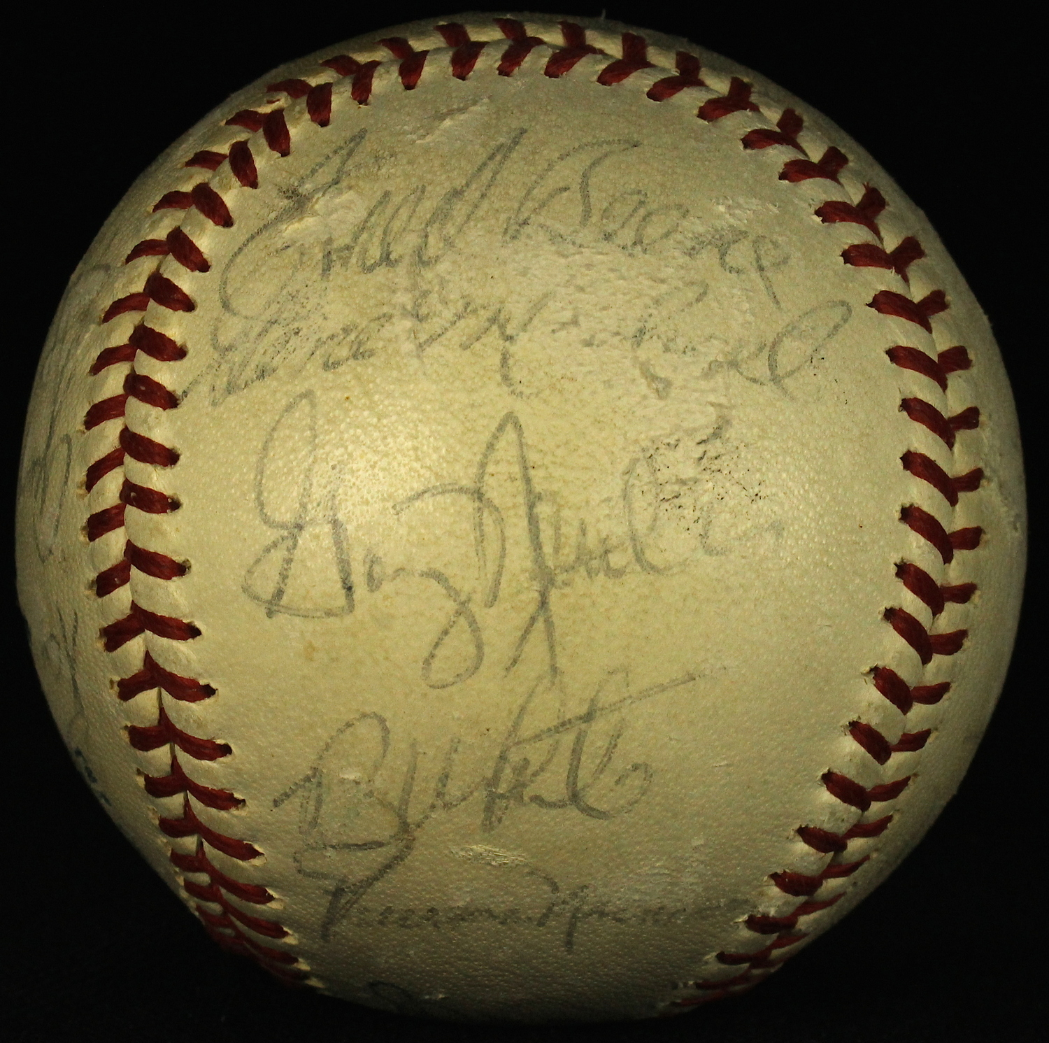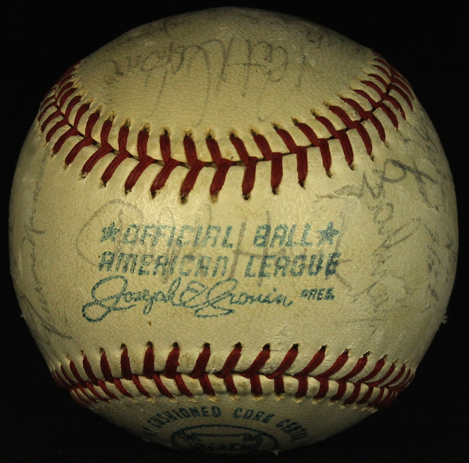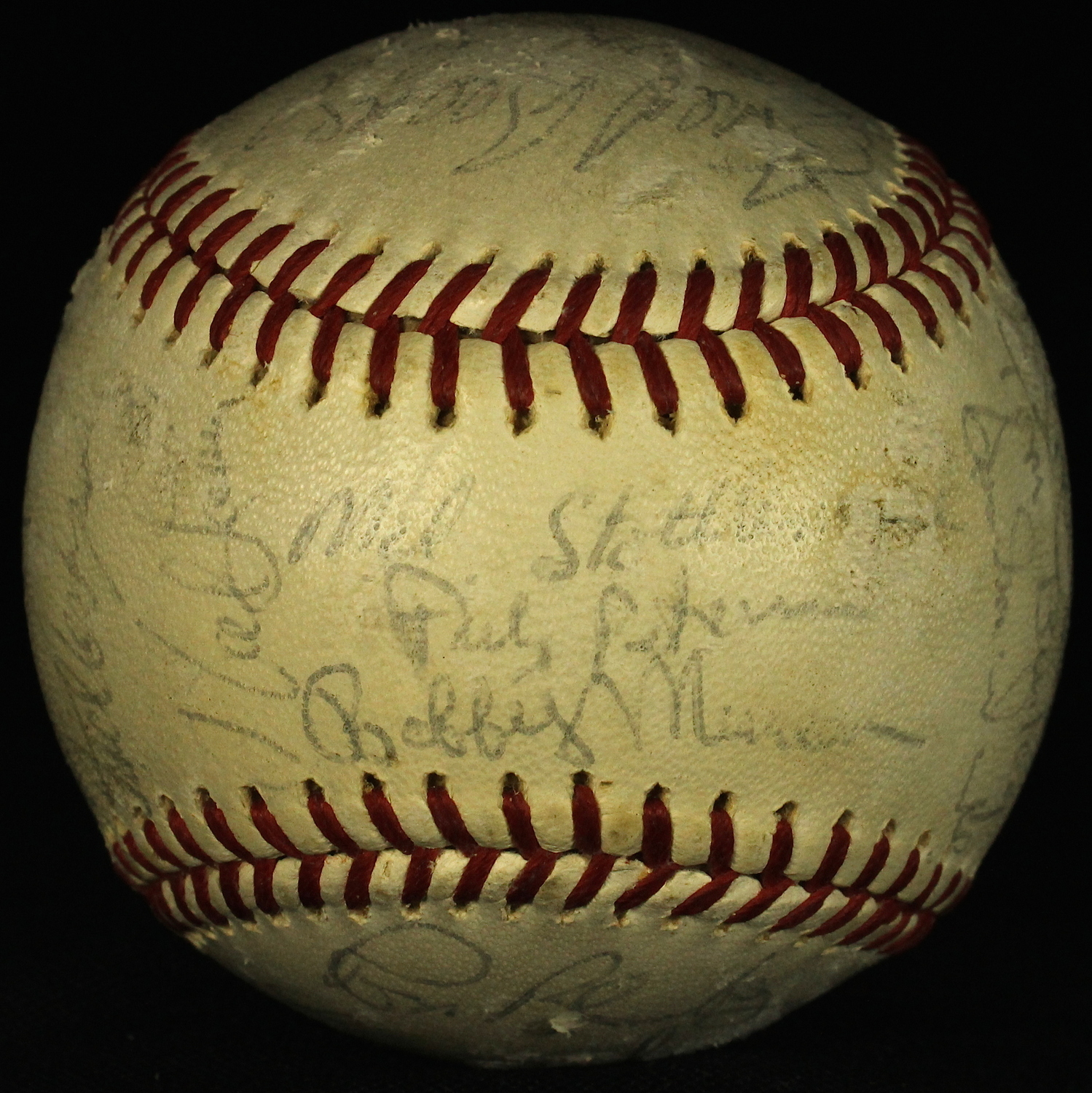 Official American League Baseball hand-signed in black ink pen by Mel Stottlemyre, Roy White, Ron Swoboda, Graig Nettles, Fritz Peterson, Bobby Murcer (clubhouse signature), Pat Dobson, Wayne Granger, Fred Stanley, Rick Dempsey, Hal Lanier, Fred Beene, Gene Michael, Thurman Munson (clubhouse signature), Doc Medich, Harace Clarke, Tom Buskey, Ron Blomberg, Lindy McDaniel, Jerry Moses, Ralph Houk. The autographs include an LOA and lifetime authenticity guarantee from Pristine Auction.