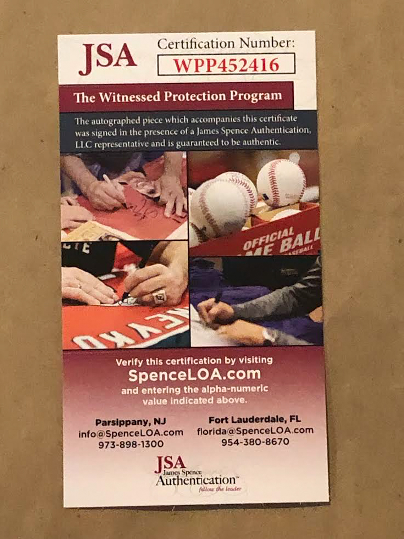 The lot / autograph(s) includes an official James Spence Authentication (JSA) hologram and matching COA for authenticity purposes. The signing of this item was witnessed by JSA.
