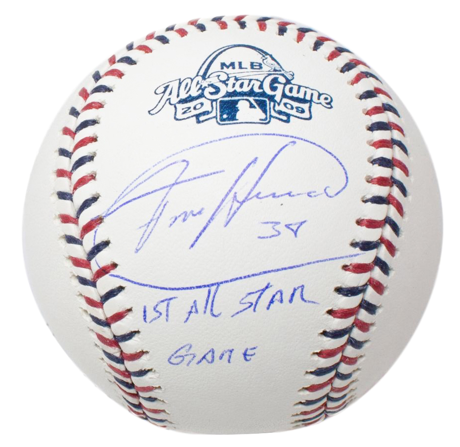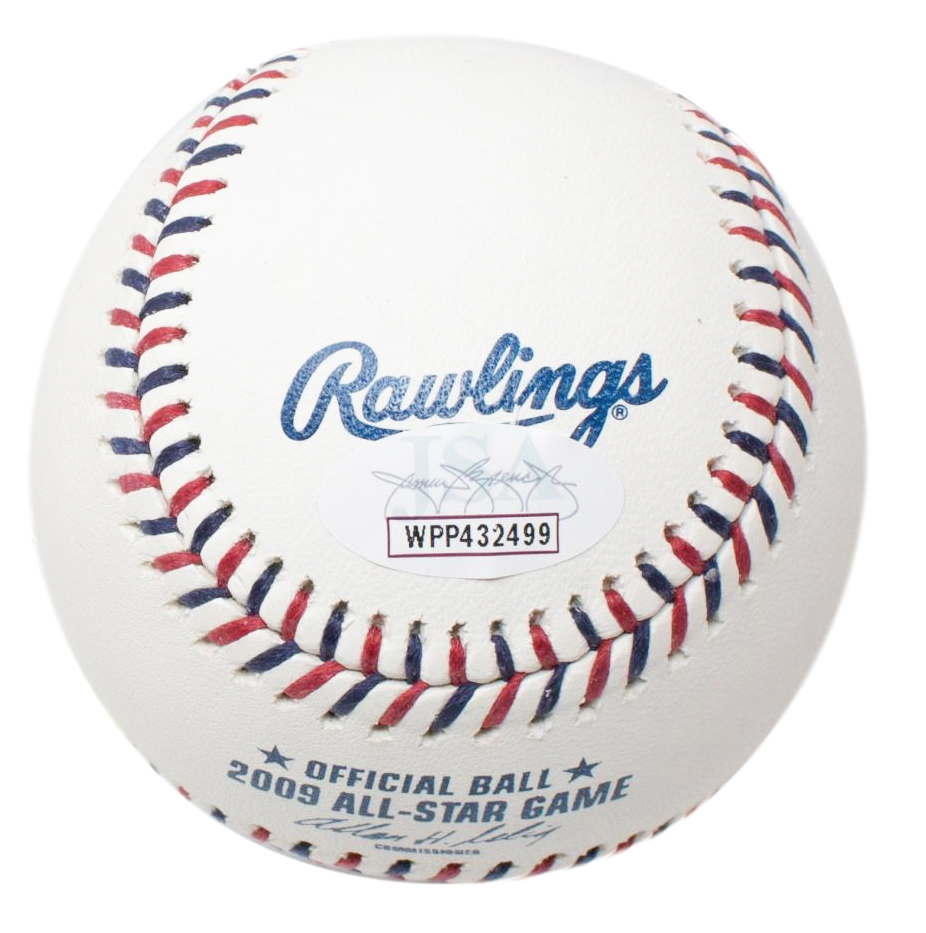 Rawlings Official 2009 All-Star Game baseball. Hand-signed and inscribed in blue ink pen by Felix Hernandez (Seattle Mariners).