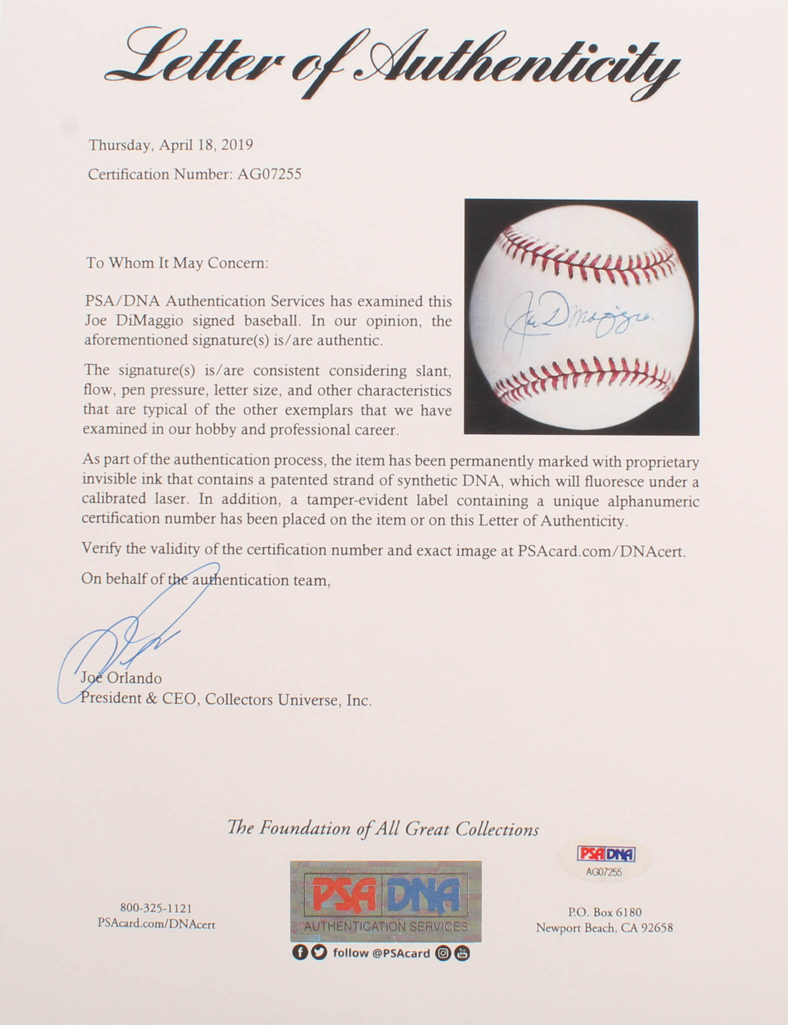 Joe DiMaggio Signed OAL Baseball with Display Case (PSA LOA)