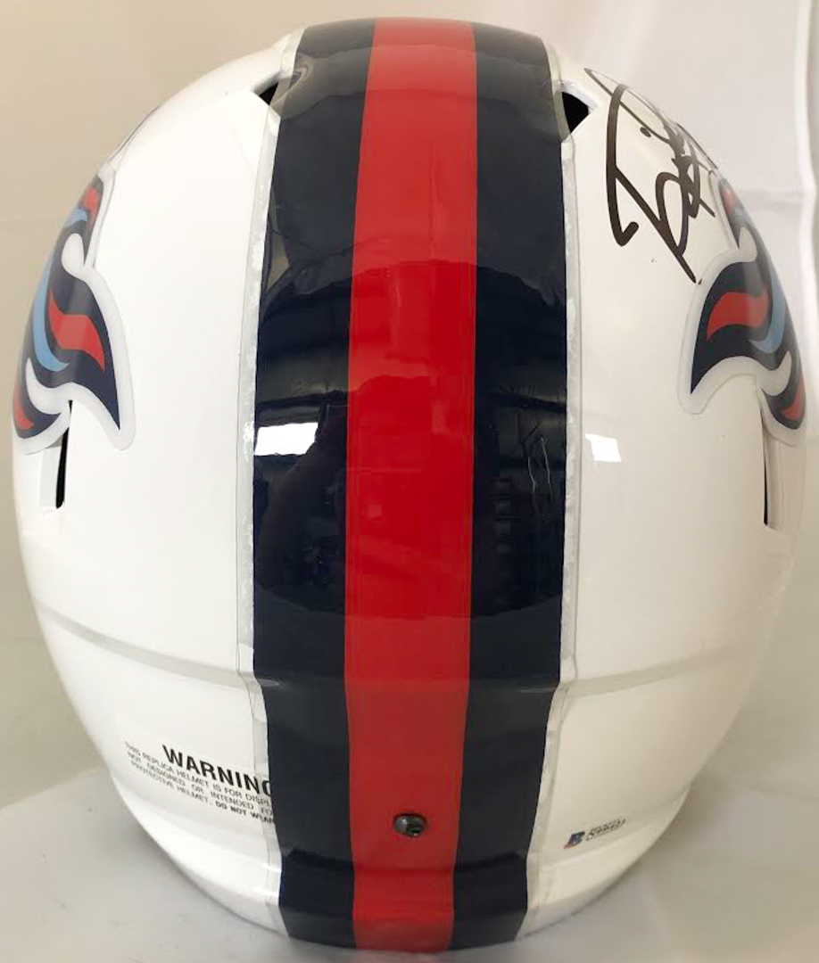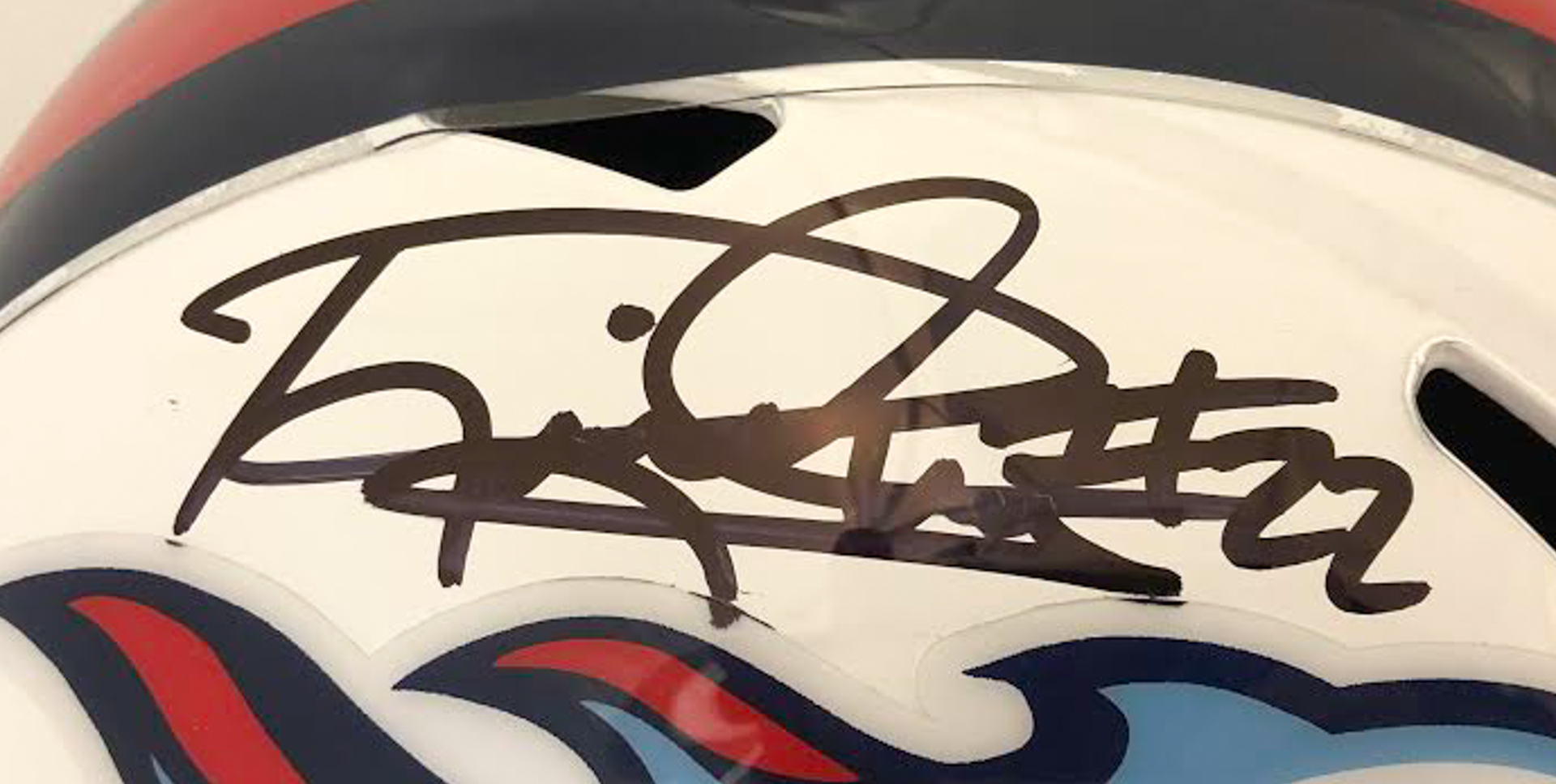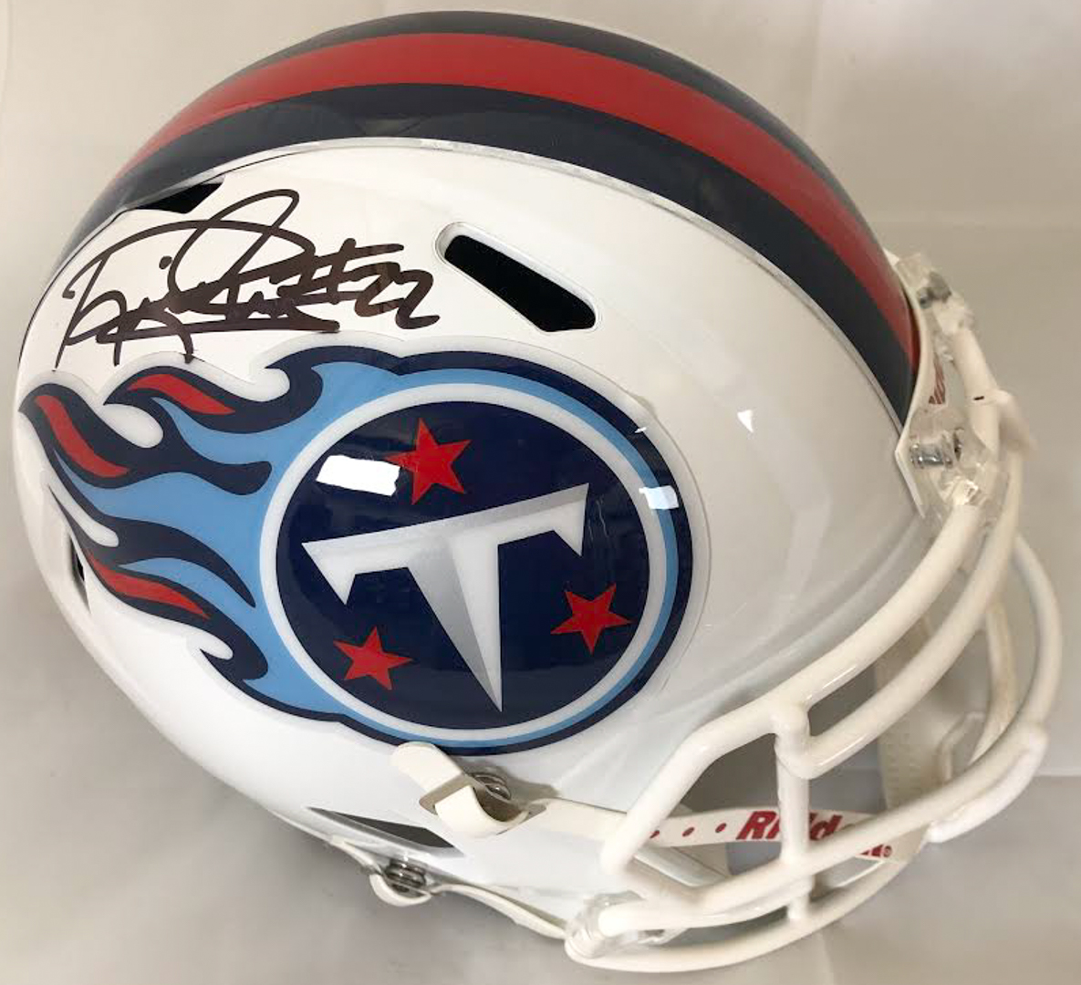 Riddell Tennessee Titans full-size speed replica helmet has been hand signed in black felt-tip pen by Derrick Henry.