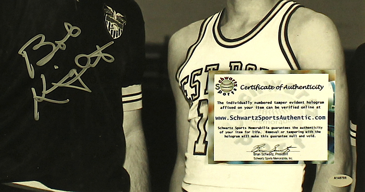 Bobby Knight Signed West Point 11x14 Photo with Mike Krzyzewski (Schwartz COA)