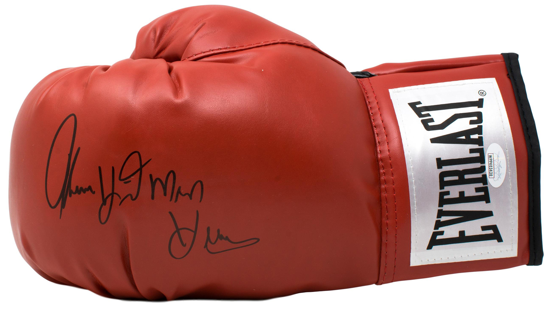 Everlast boxing glove has been hand-signed in black felt-tip pen by Thomas "Hitman" Hearns.
