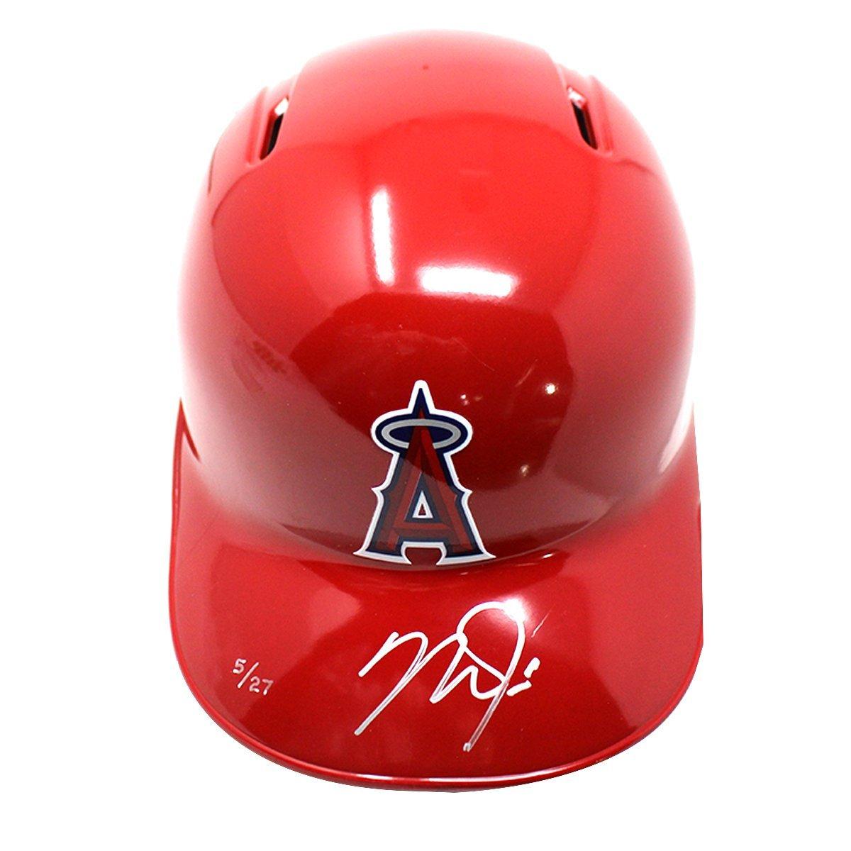 Los Angeles Angels full size replica batting helmet has been hand-signed in silver paint pen by Mike Trout. Limited edition #/27.